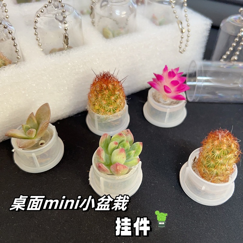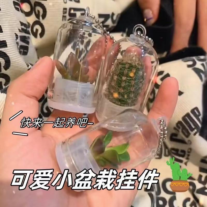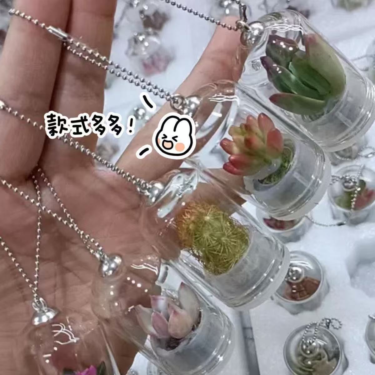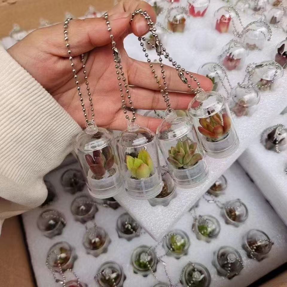 Миниатюрный креативный брелок-пейзаж с живым суккулентом в стеклянном горшке