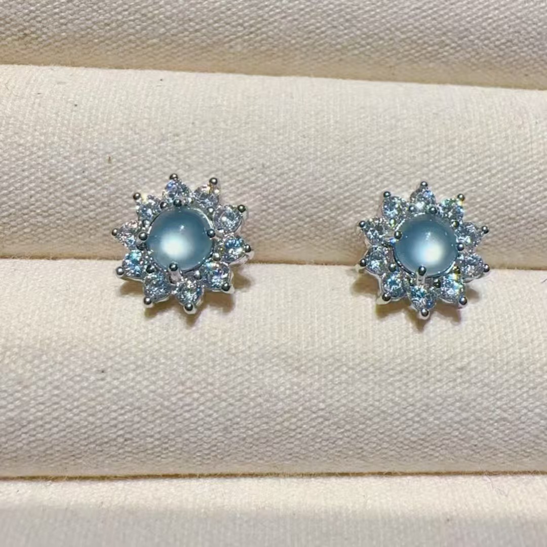 Натуральный опасный материал изумрудный S925 стерлингового серебра инкрустирован синей водой яичной лапши снежинки ушные гвозди ниши