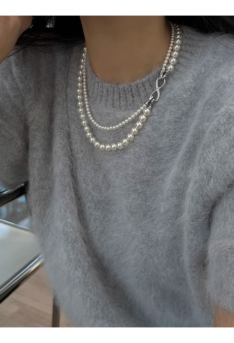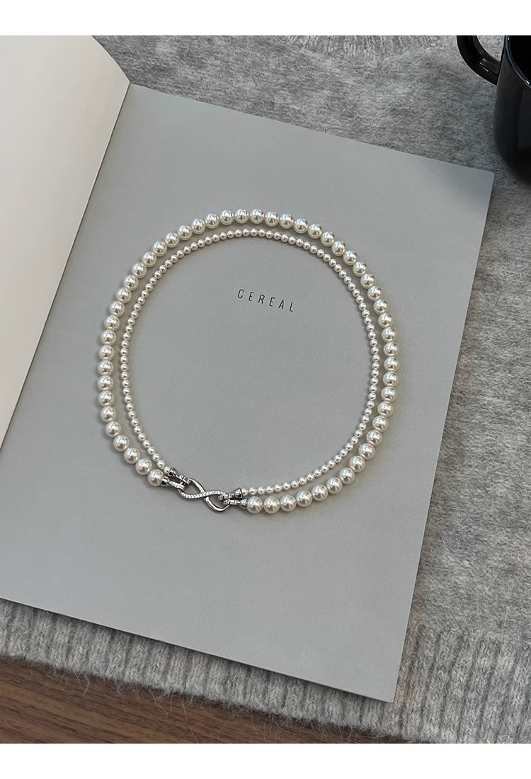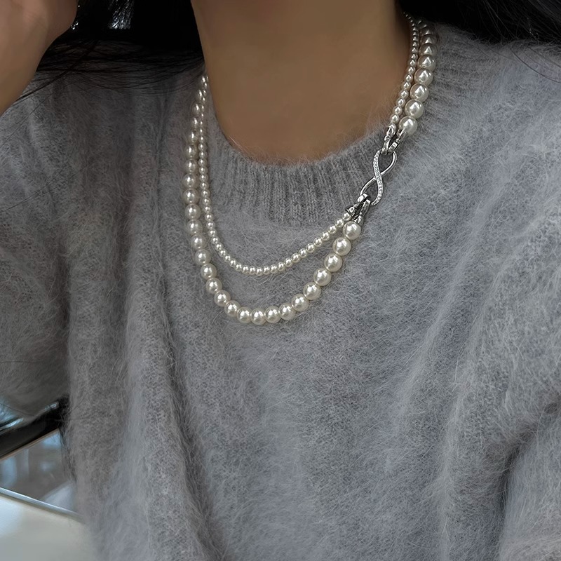 Двухслойный жемчуг ожерелье женский легкий экстравагантный стиль высокого уровня свитер свитер цепь осень-зима 2025 новый взрывной шейный браслет