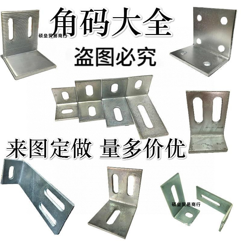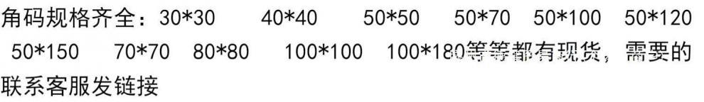 30*30*3; 40*40*3; 40*40*4; 40 угловой код с маленьким отверстием; 50*50*3; 50*50*5; 50+70*50*4; 50*70*5; 50+100*50*4; 50*100*5; 50*80 маленькое отверстие; 50+120*50*5; 50+150*50*5; 100+150*50*5; 100+100*50*5; 150+150*50*5; 100+200*60*6