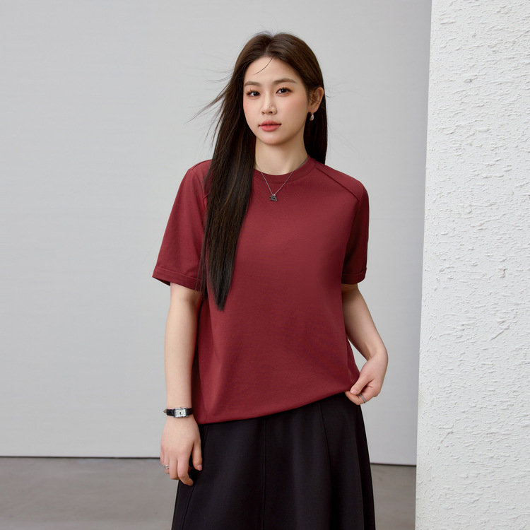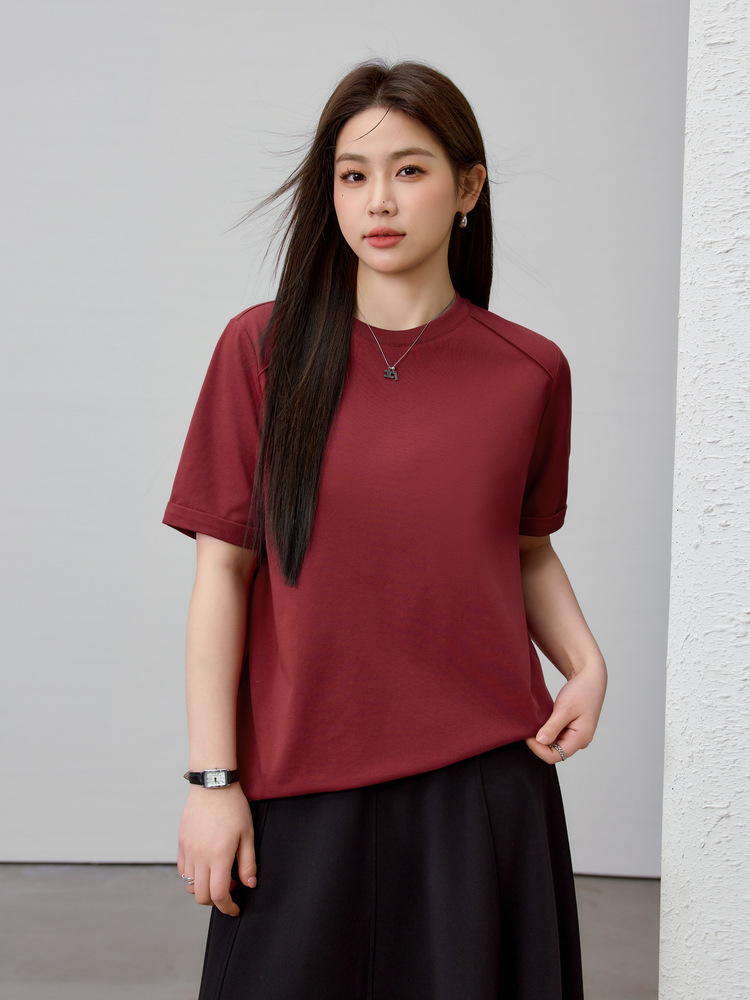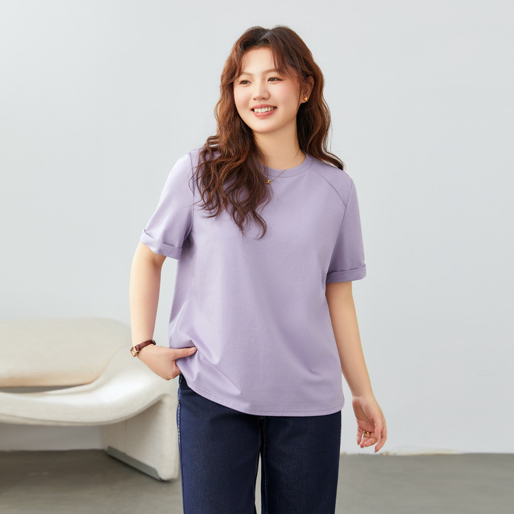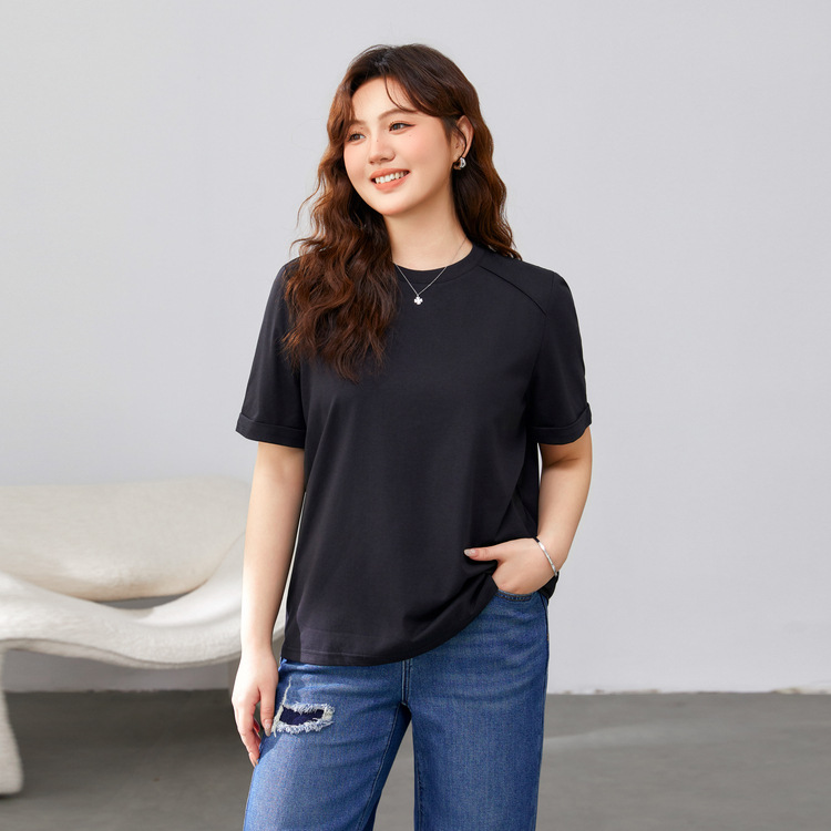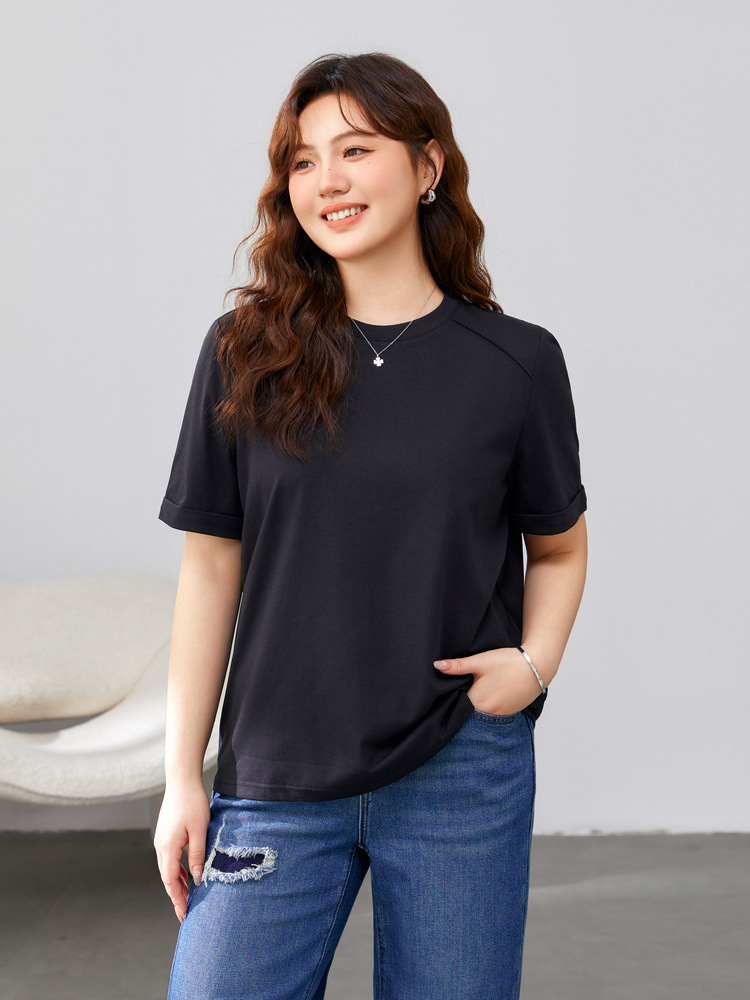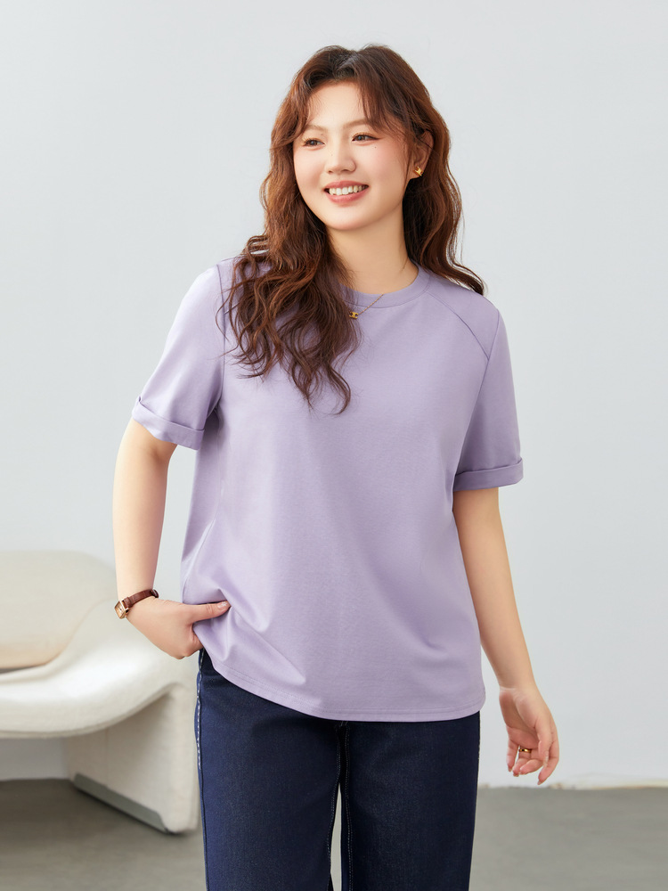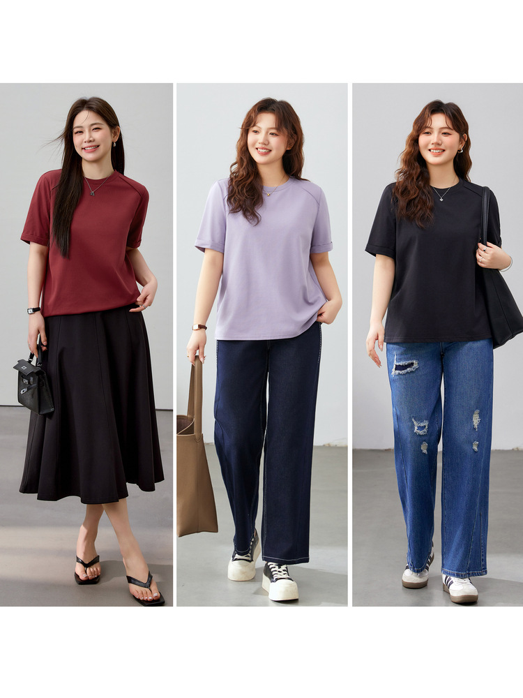 【Простая элегантная однотонная универсальная футболка для похудения с круглым вырезом】Женская одежда больших размеров для пышных женщин, весенняя новая модель 2025 года.
