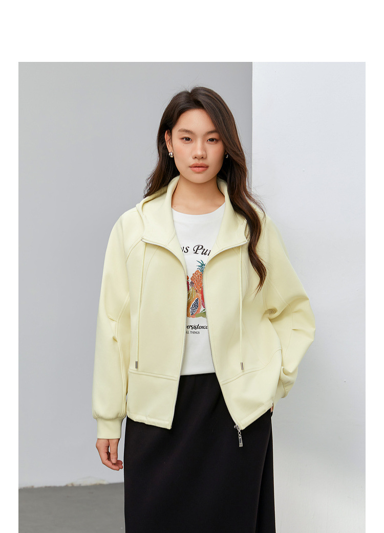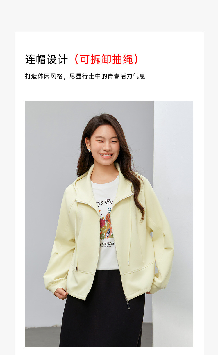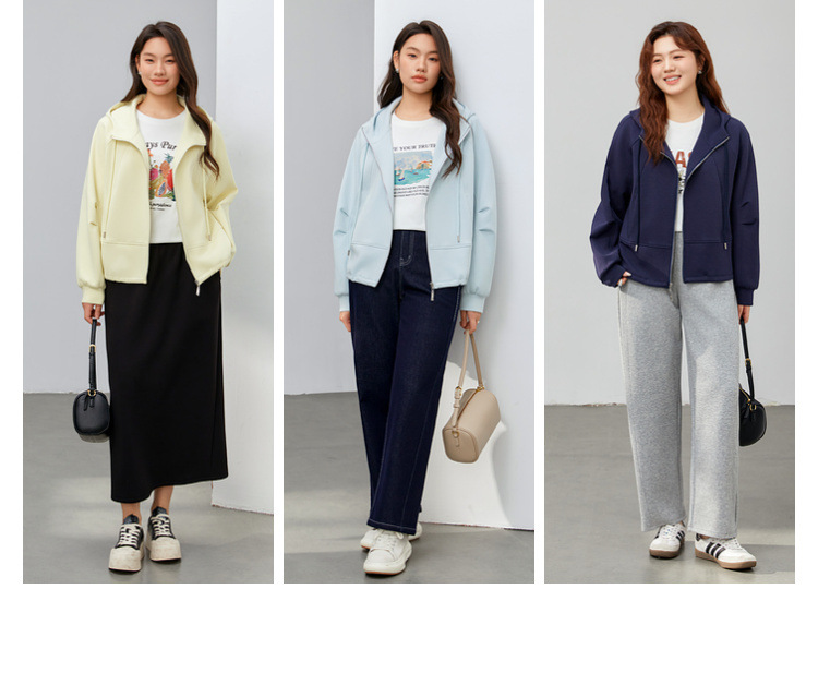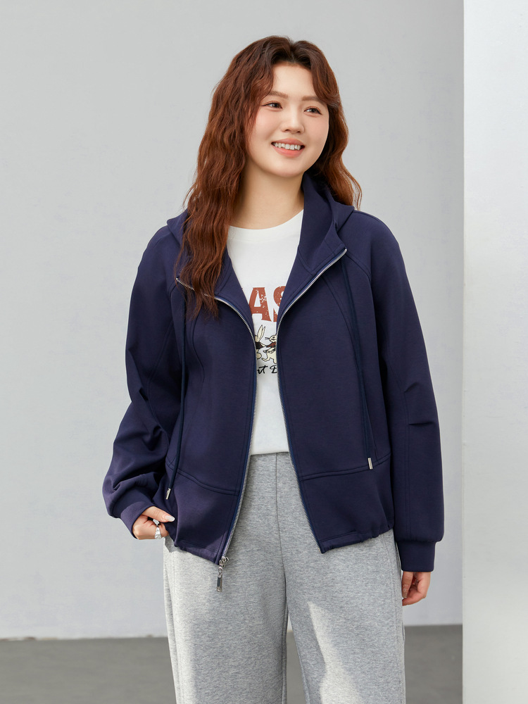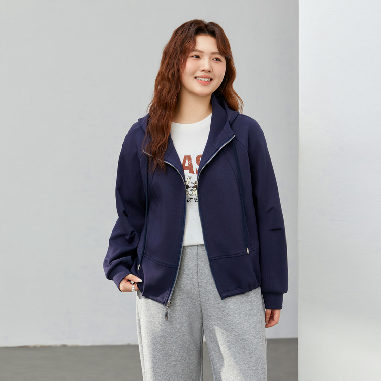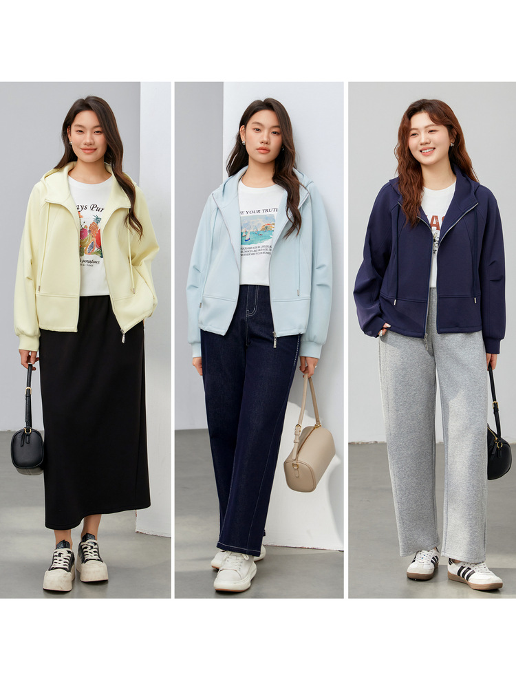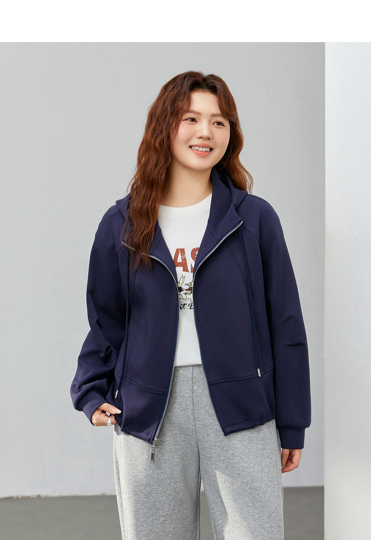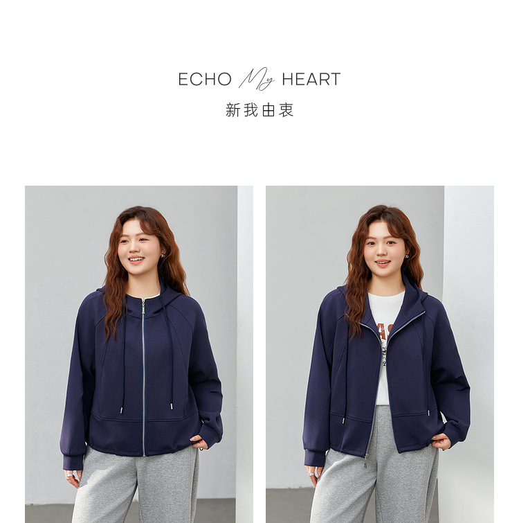 [Простая повседневная спортивная молния с капюшоном дикая куртка] Funny Show большой размер женский толстый mm2025 весенний новый
