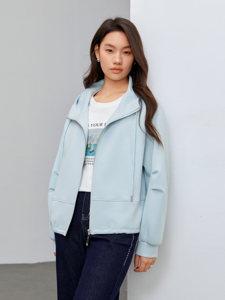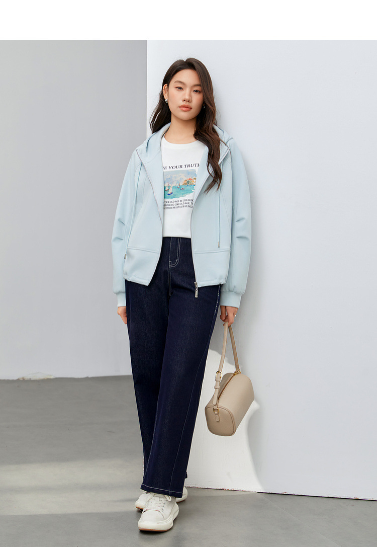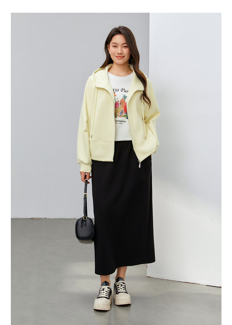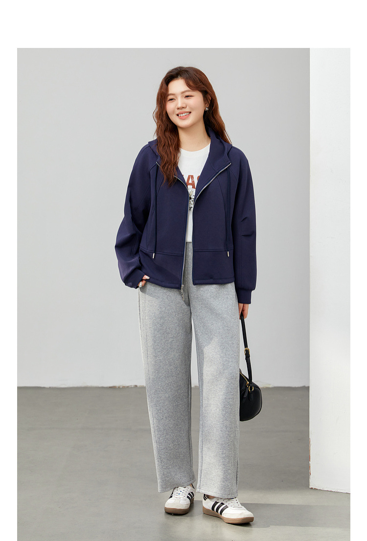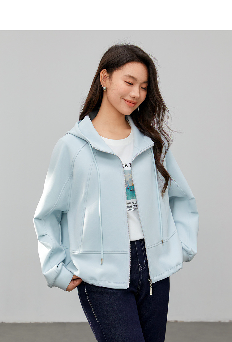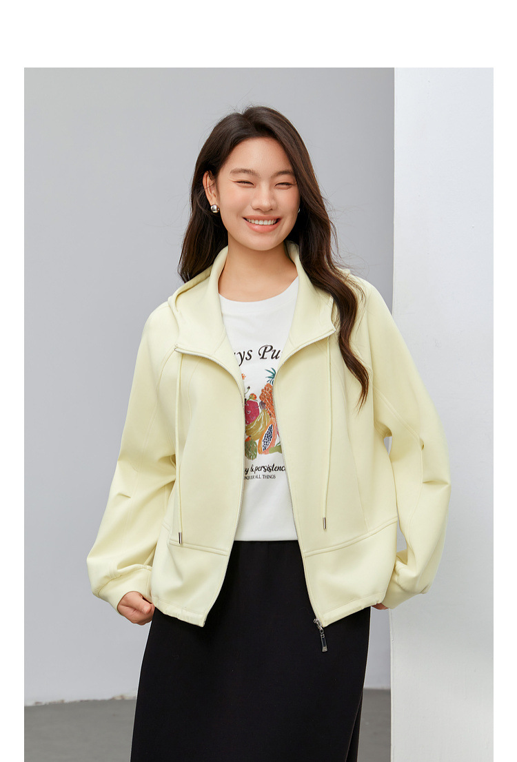 [Простая повседневная спортивная молния с капюшоном дикая куртка] Funny Show большой размер женский толстый mm2025 весенний новый