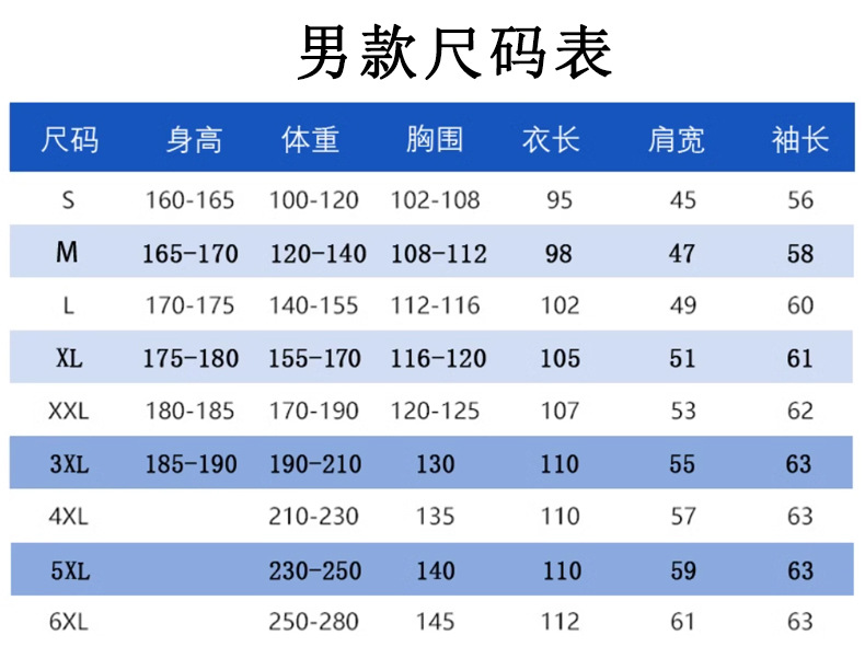 S; M; L; XL; 2XL; 3XL; 4XL; 5XL; 6XL; 7XL