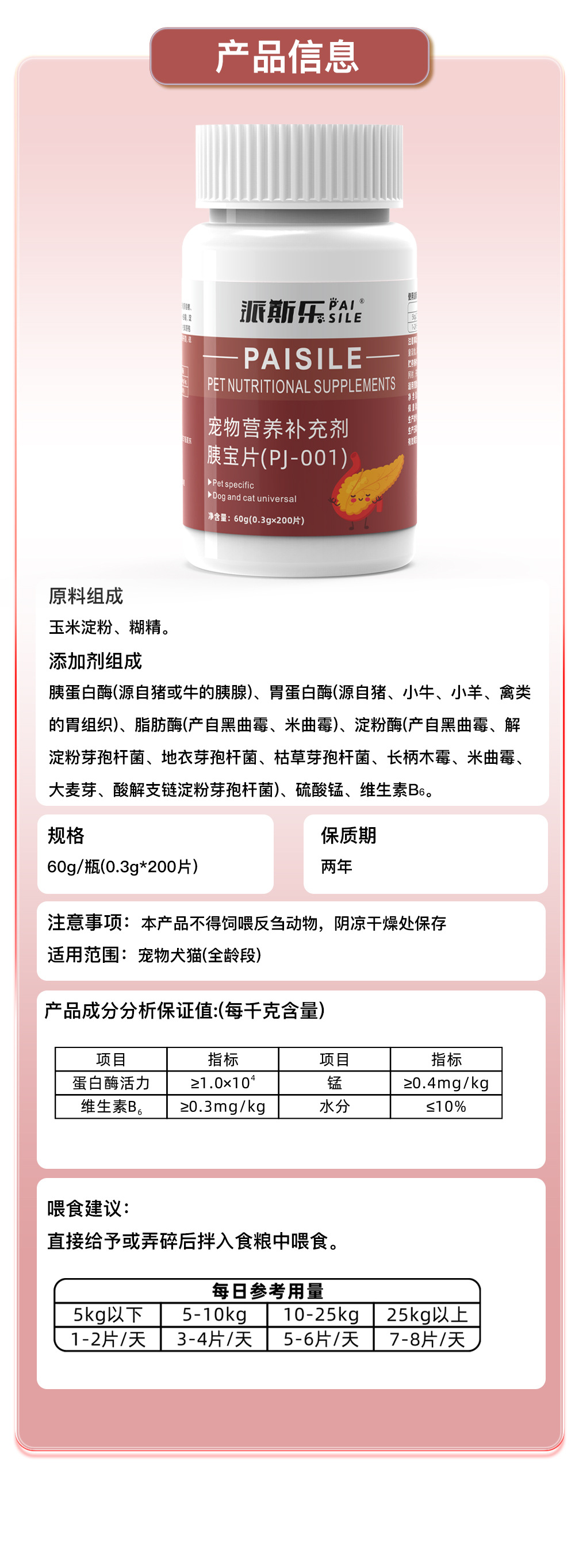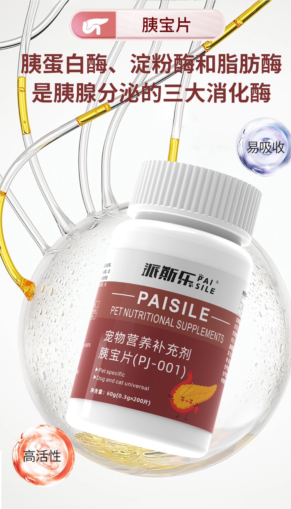 Paisile Pancreas Treasure Tablets: Специализированная пищевая добавка для животных, ферменты для пищеварения собак и кошек, 200 таблеток
