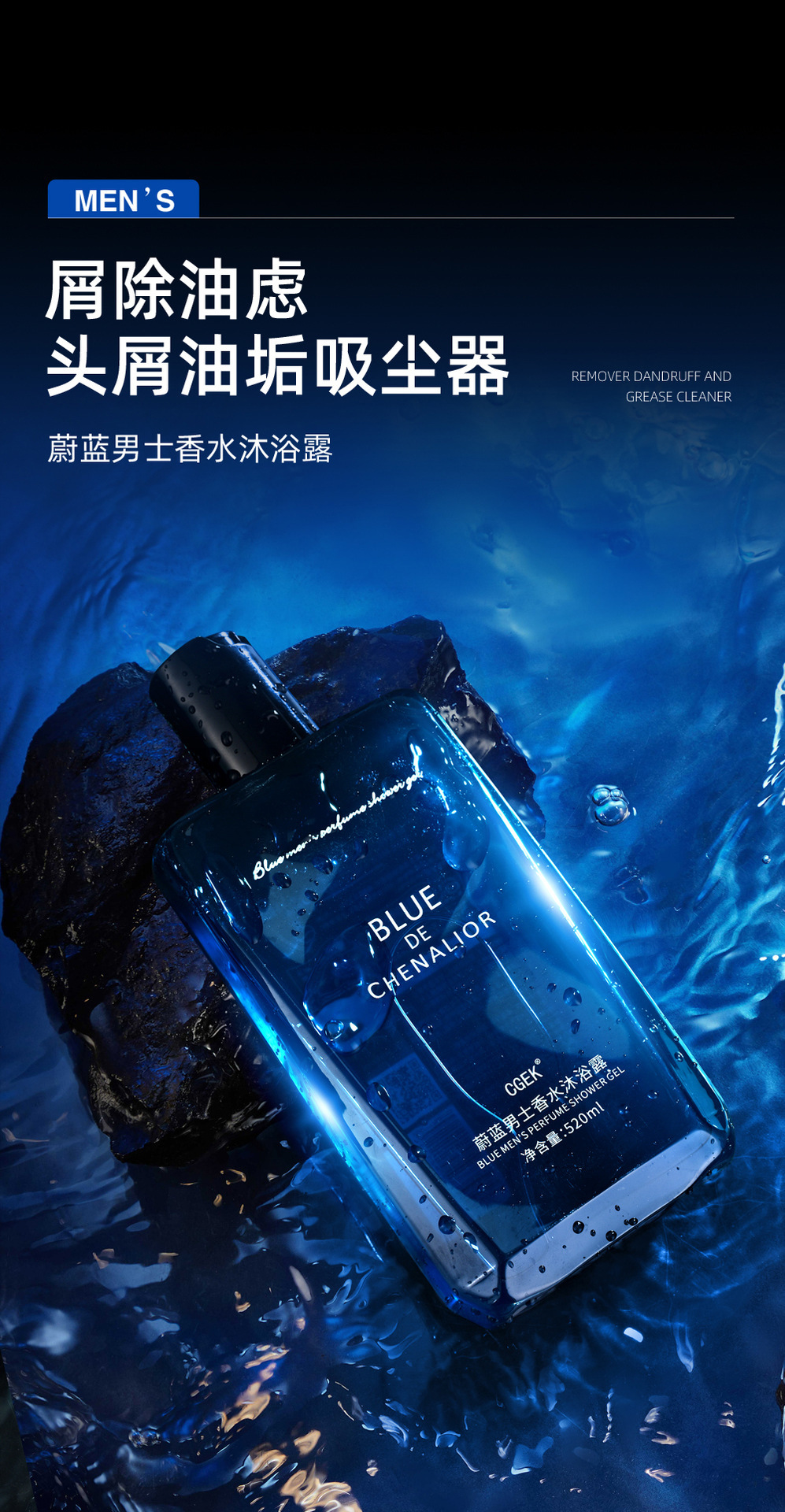 Лазурный душевой гель для душа долговечного аромата шампунь для контроля масла и обезжиривания освежающий мужской ароматизатор