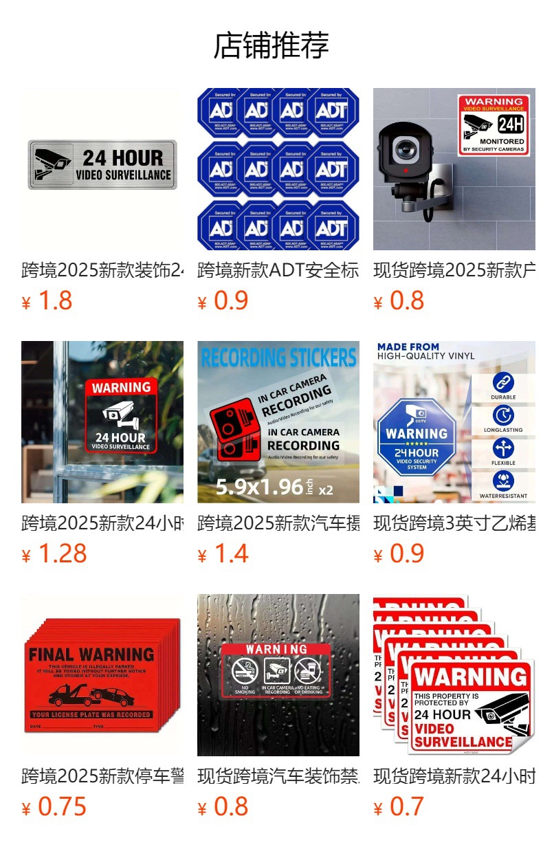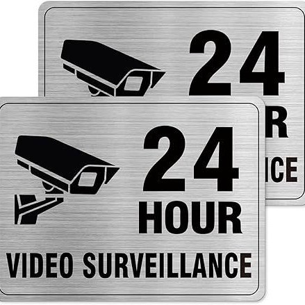 Новая декоративная наклейка Amazon 2026 года: предупреждающая этикетка/знак/стикер для круглосуточного видеонаблюдения, матовое серебро, креативный дизайн