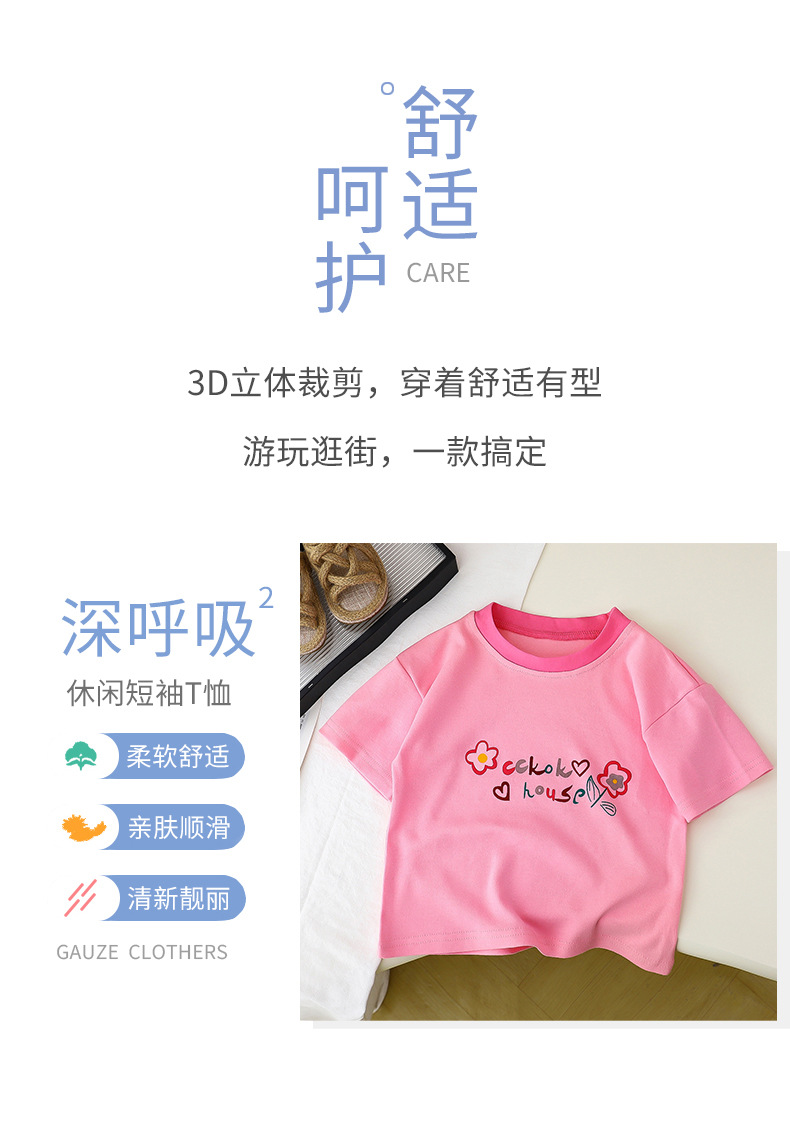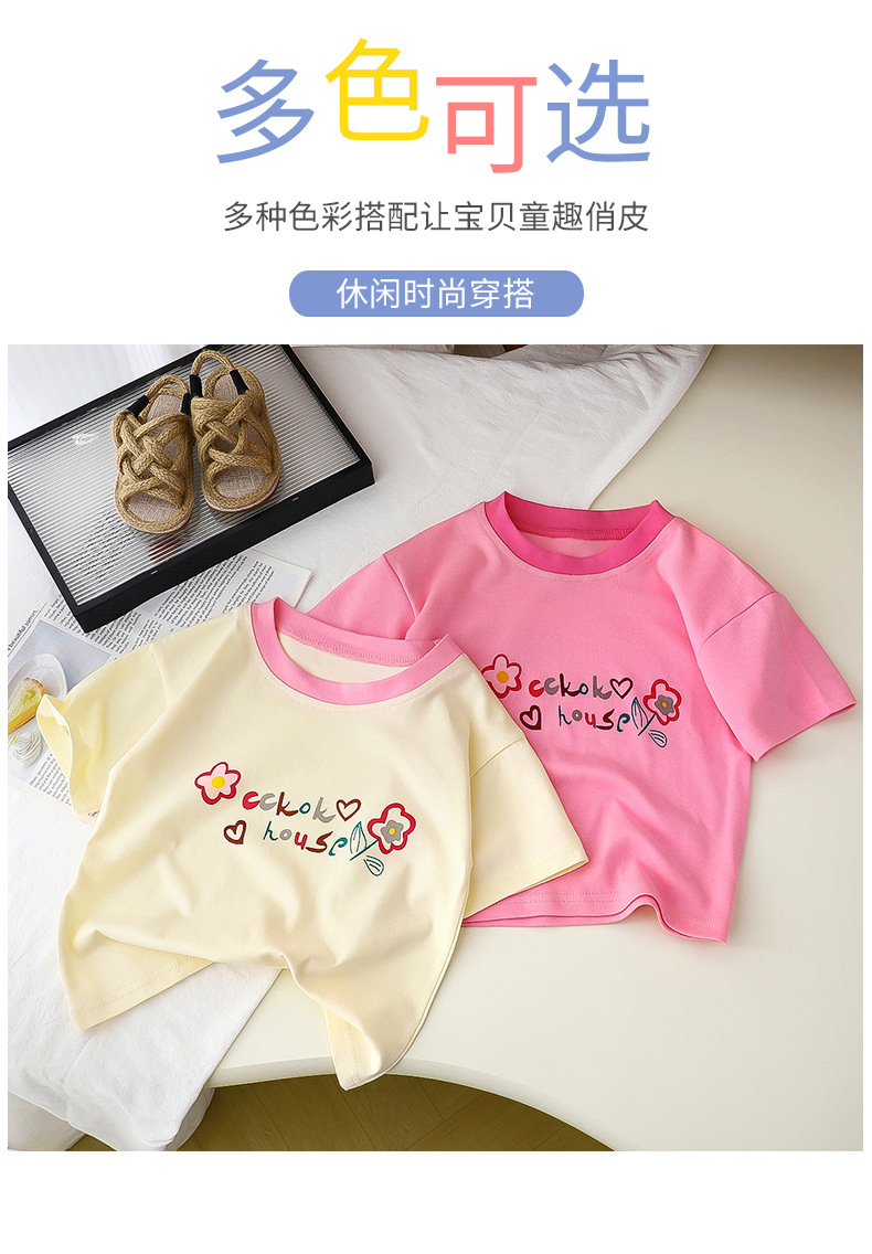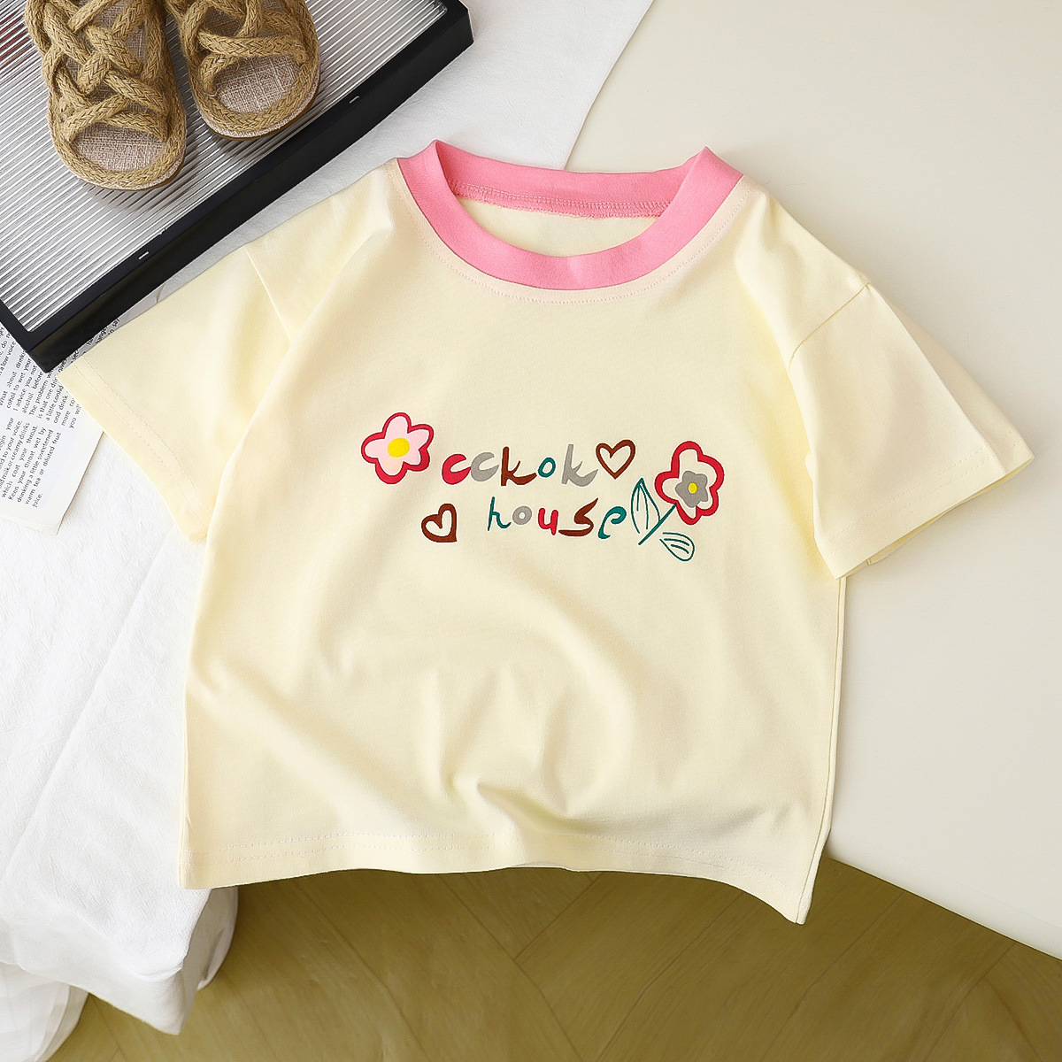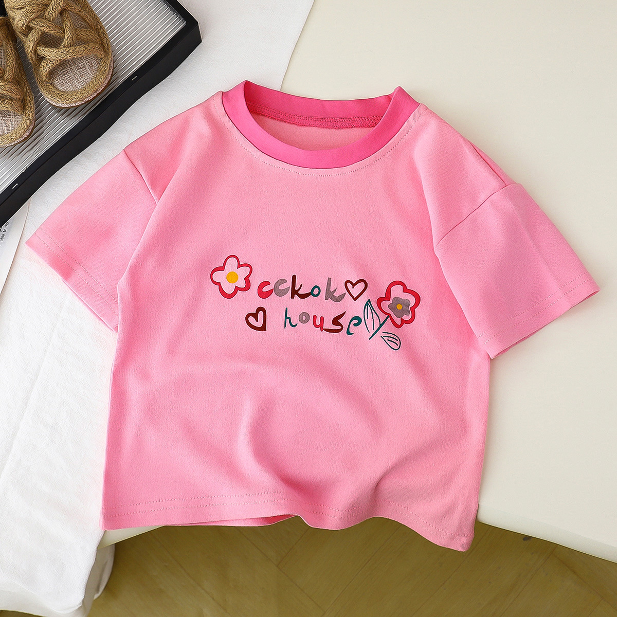 Футболка с мультяшным принтом для девочек 2025 лето новый детский милый с короткими рукавами