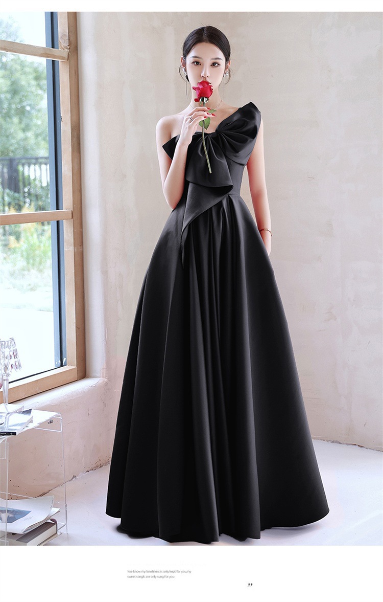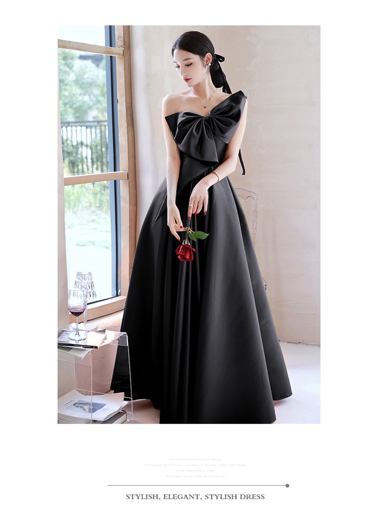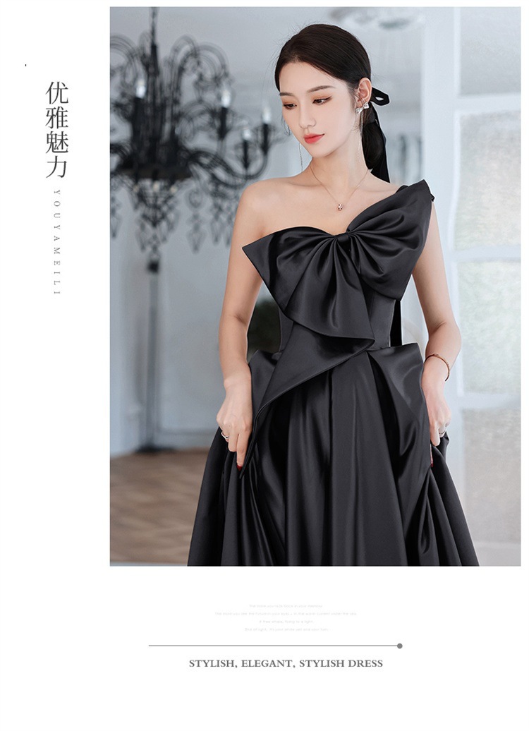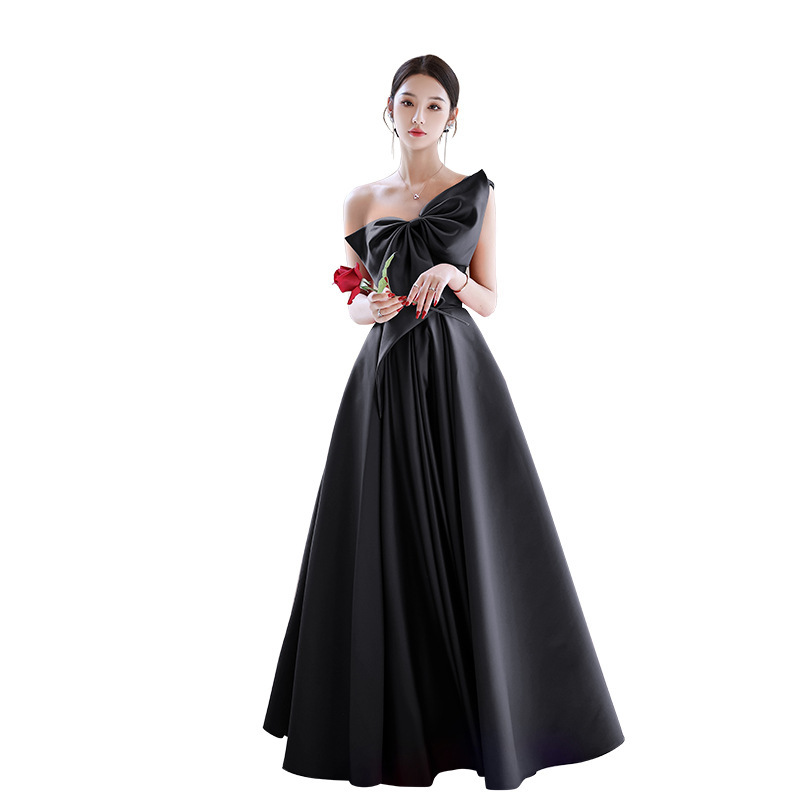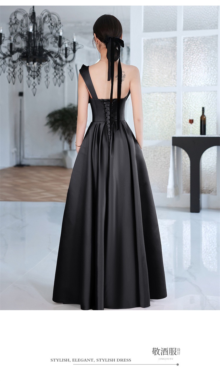 Черное вечернее платье 2026: Новинка осенне-зимнего сезона, элегантное атласное платье для корпоративных мероприятий, выпускных и торжественных церемоний.