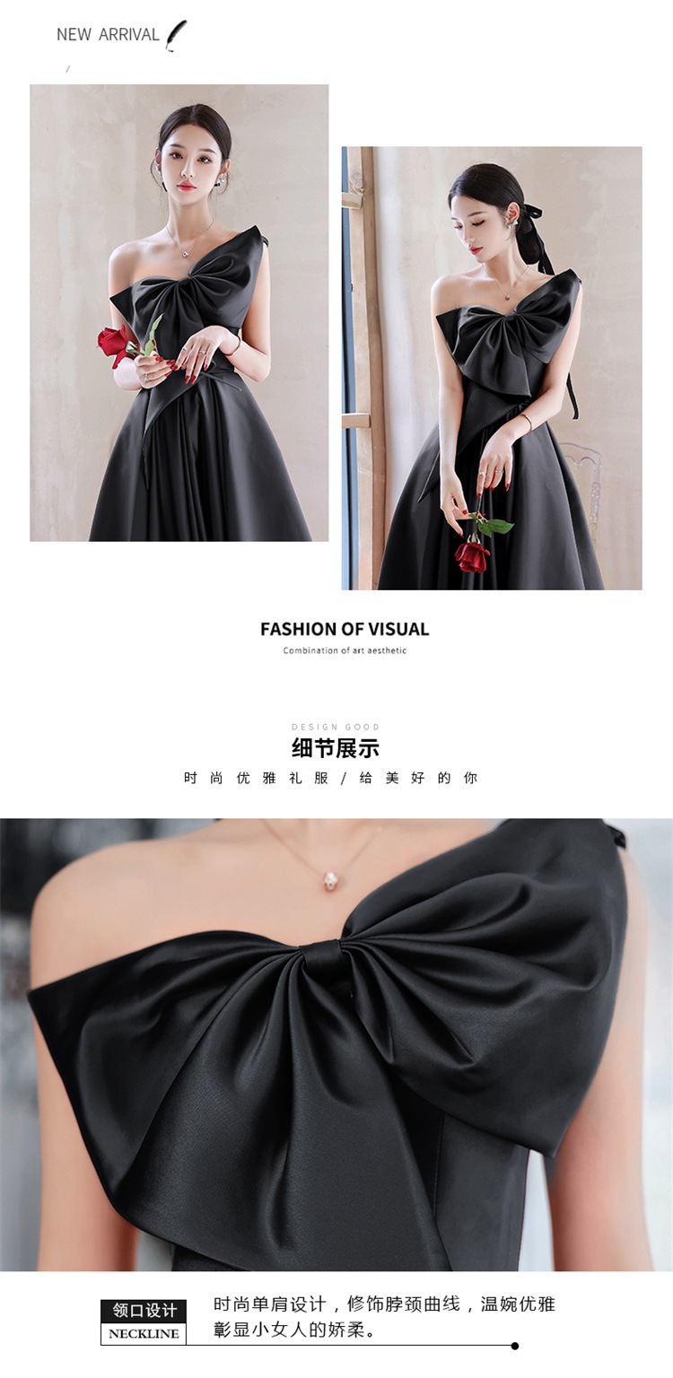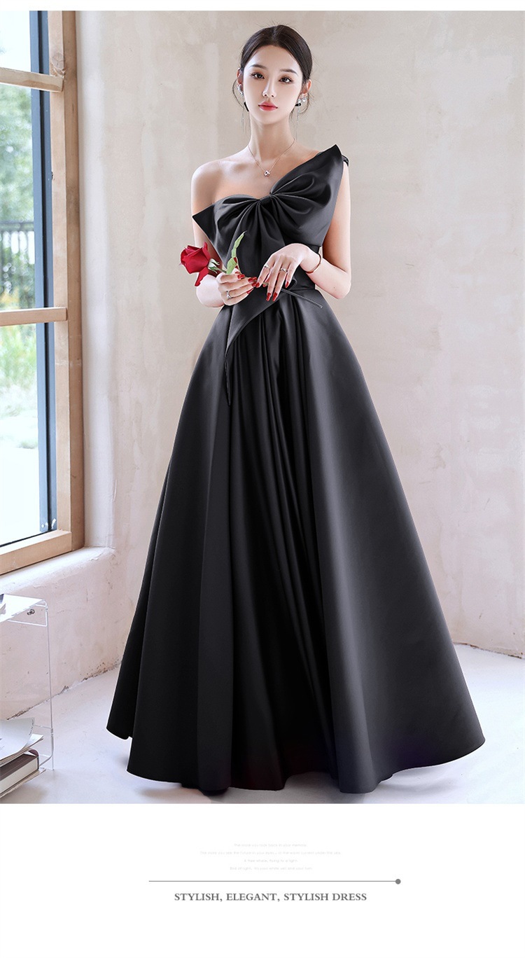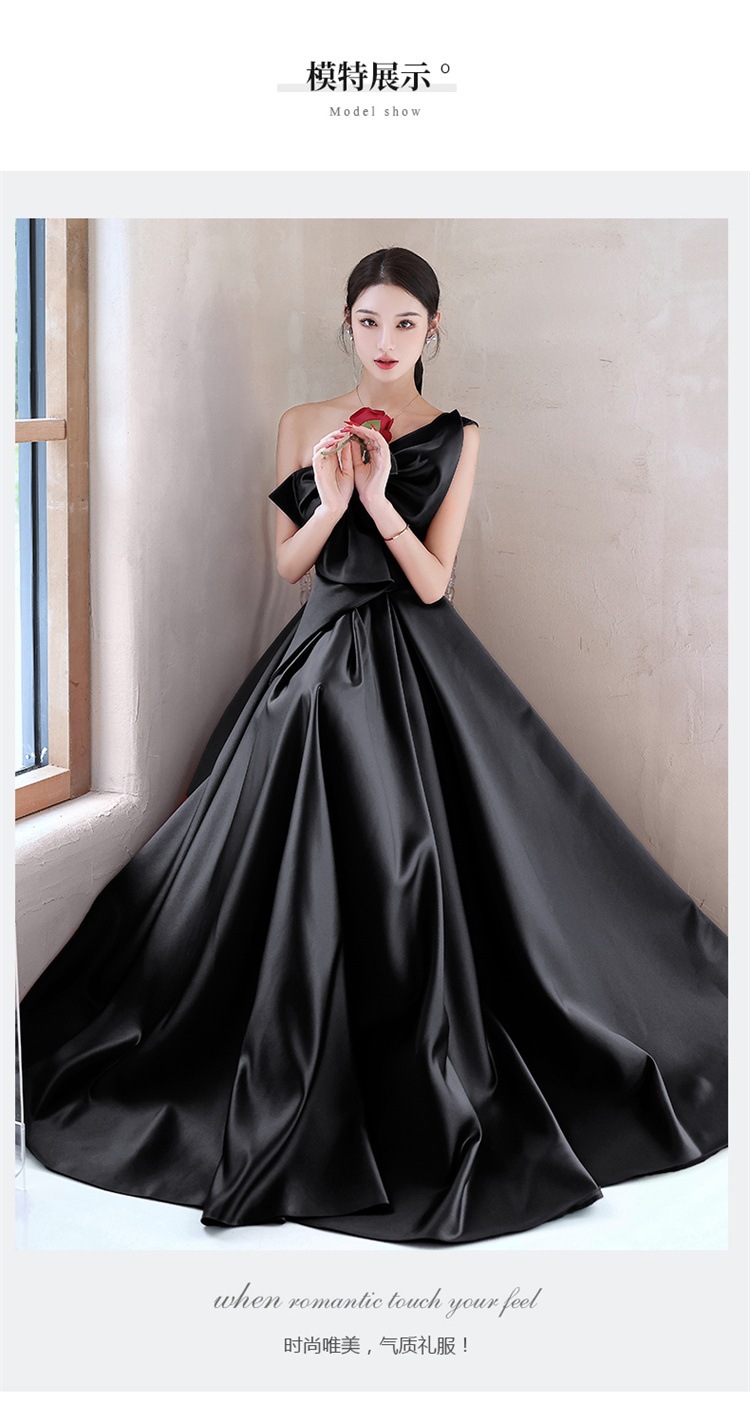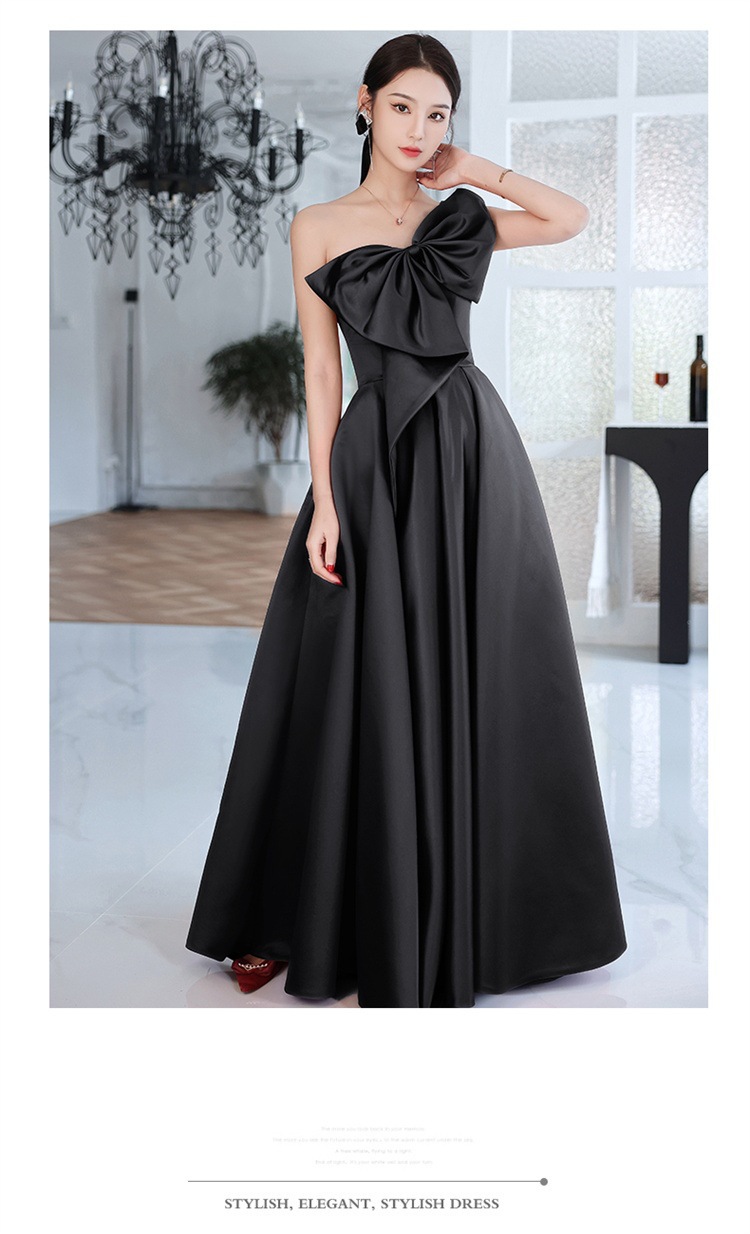 Черное вечернее платье 2026: Новинка осенне-зимнего сезона, элегантное атласное платье для корпоративных мероприятий, выпускных и торжественных церемоний.