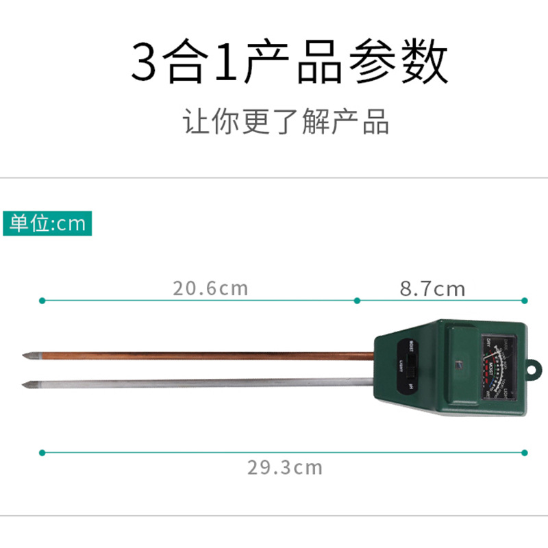 Квадратная головка три в одном детектор почвы pH pH, влажность, световой измеритель гигрометр
