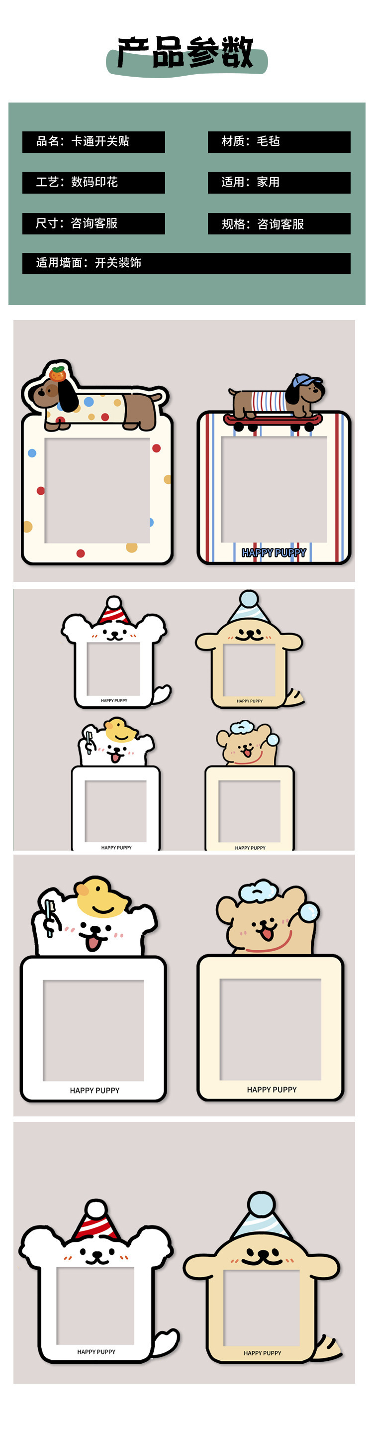 Креативный переключатель защитный чехол милый щенок переключатель наклейки для дома розетки рамка набор войлочных декоративных настенных наклеек