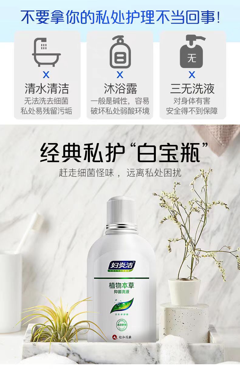 Жидкость для очищения интимных зон Enwei, средство для гигиены женских интимных зон, антибактериальная жидкость на растительной основе Jieeryin, 380 мл.