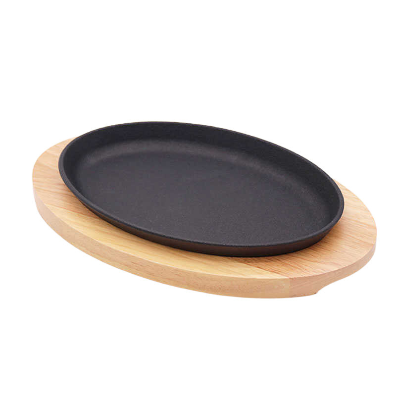 Толстая овальная тарелка для стейков из говядины, железная тарелка, деревянная деревянная подушка, каменная плита, утеплитель, деревянная подушка, универсальная поддон для бизнеса