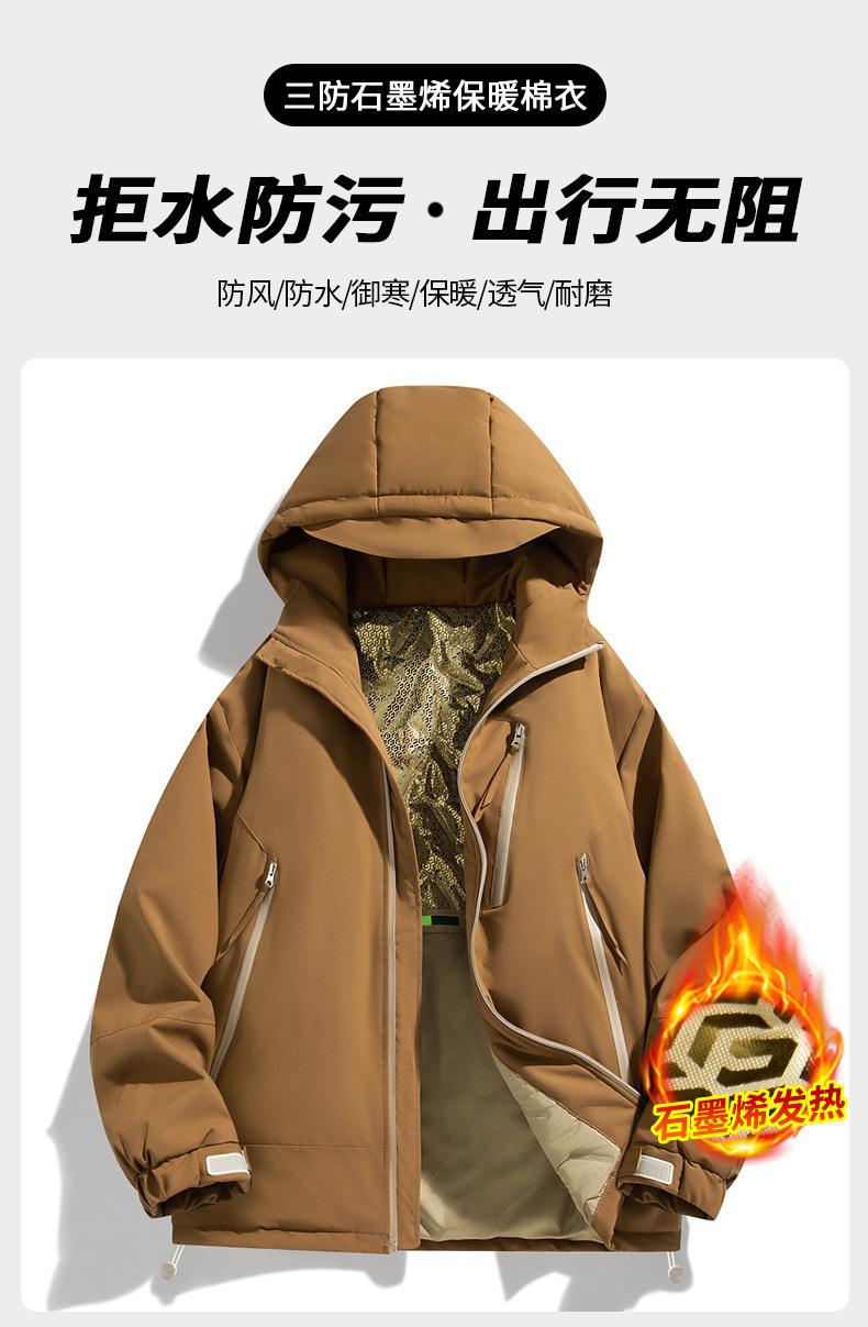Графен утолщенный куртка осенью и зимой пара наружная ветрозащитная водонепроницаемая теплая горная хлопчатобумажная куртка