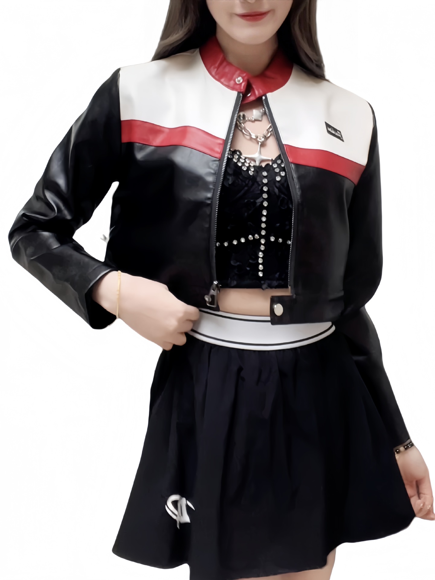 Женская кожаная куртка-пилот для мотоциклистов, укороченная, приталенная, с рукавами-крылышками и заклепками, для международной торговли, на заказ