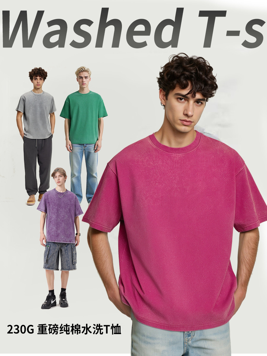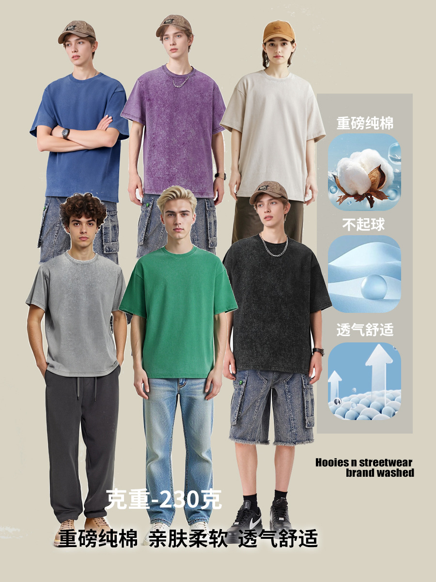 Мужская свободная футболка из чистого хлопка с круглым вырезом, коротким рукавом, винтажная, с эффектом потертости, 230 г, в европейском и американском стиле, с принтом «снежинка», для пар