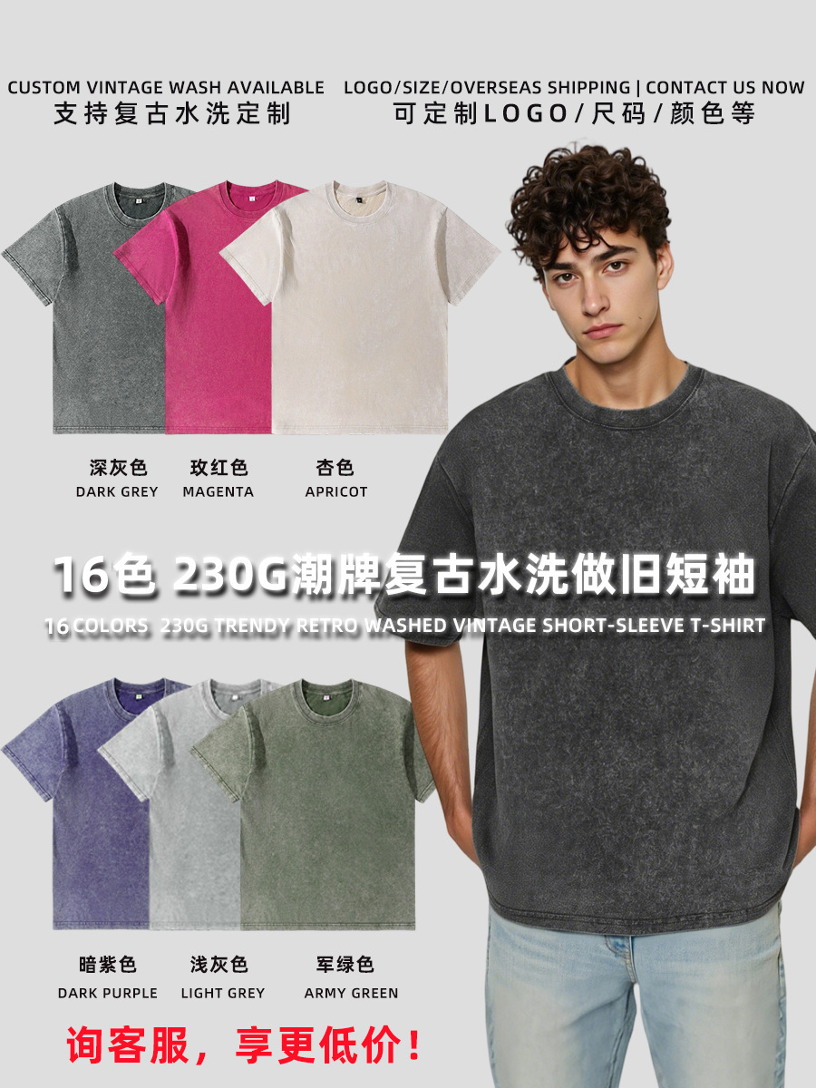 Оптовая продажа мужских свободных молодежных футболок с коротким рукавом из чистого хлопка в американском стиле, винтажные, модные, 230 г, для трансграничной торговли на Amazon.