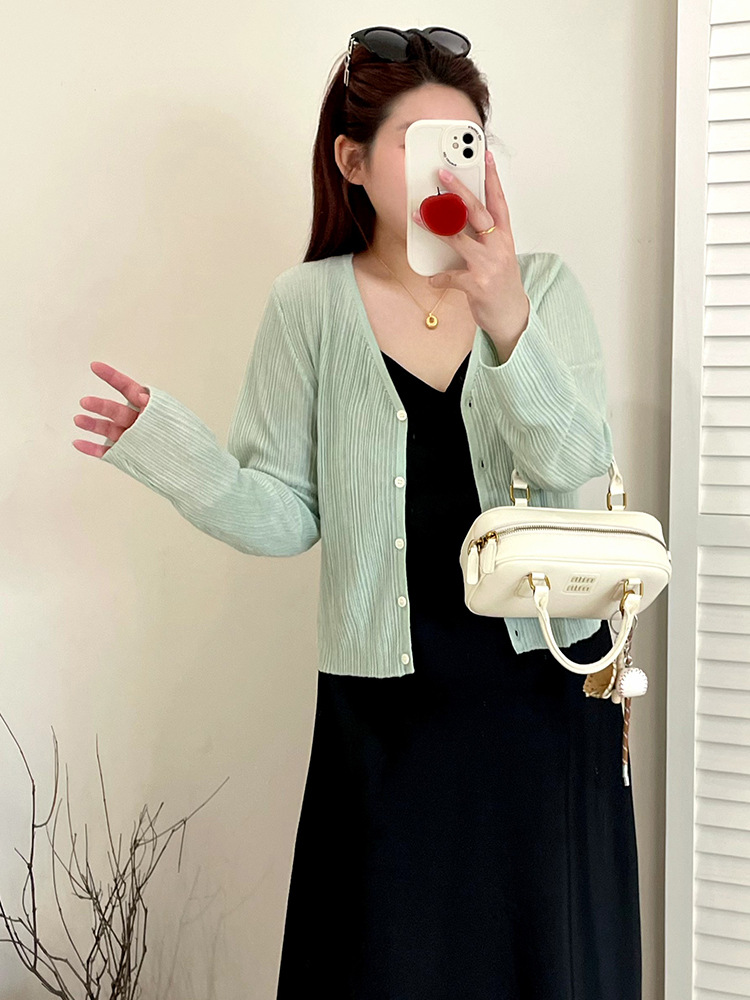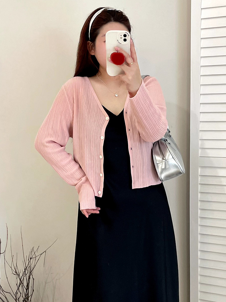 Универсальная повседневная тонкая куртка больших размеров, весна-лето 2026, свободный вязаный кардиган для женщин, укороченный топ 22916
