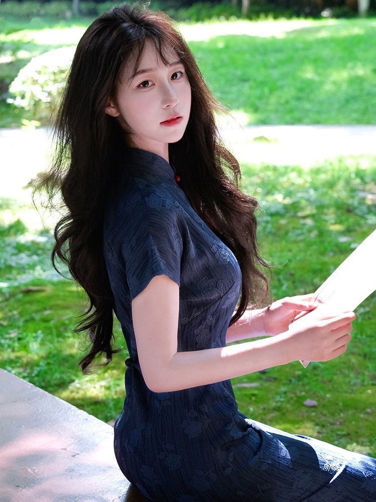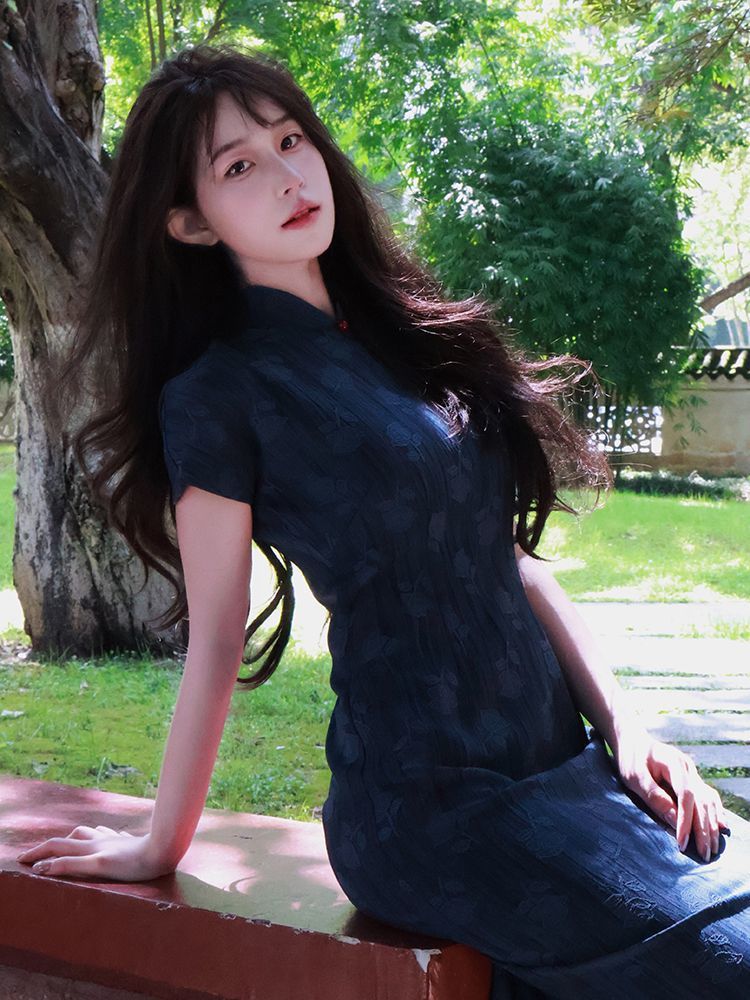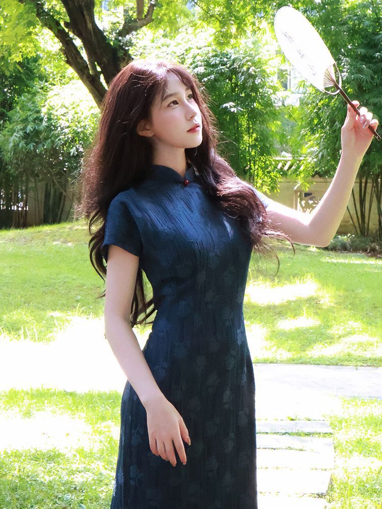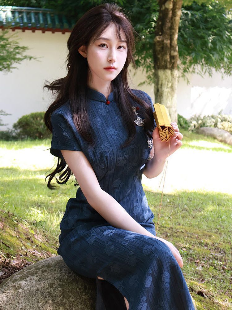 Новый китайский Cheongsam улучшенный молодой девушки 2025 новый летний стиль ретро синий жаккард можно носить ежедневно