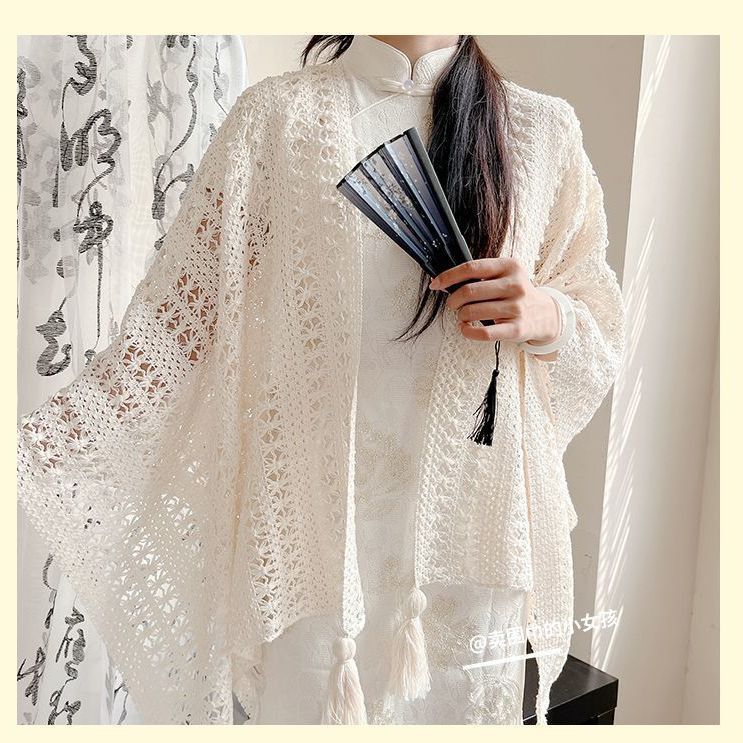 Темно-синий чонсам; Темно-синий чонсам с рукавами три четверти; 024 белая шаль [один размер подходит всем]; 024 Абрикосовая шаль [Один размер]