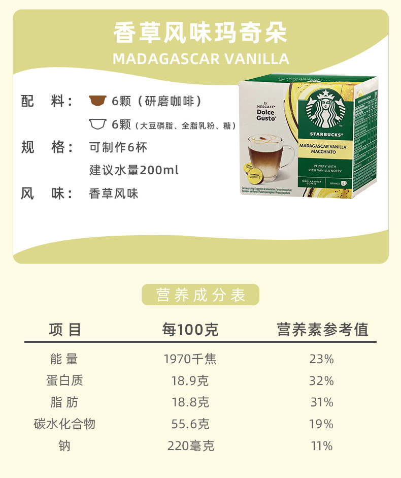 Капучино 2026-4-30; Премиум Американский Бленд 2026 - 31 декабря; Смесь Veranda в американском стиле; Макиато со вкусом карамели 2026-12-31; Белый Мокка 2026-4-30; Кофе Латте 2026-9-30; Эспрессо 2026-5-31; Макиато со вкусом ванили 2026-7-31; Тоффи Нут Латте 2026-9-30; Латте Макиато 2026-11-12; Рынок Пайк-Плейс 2026-11-17