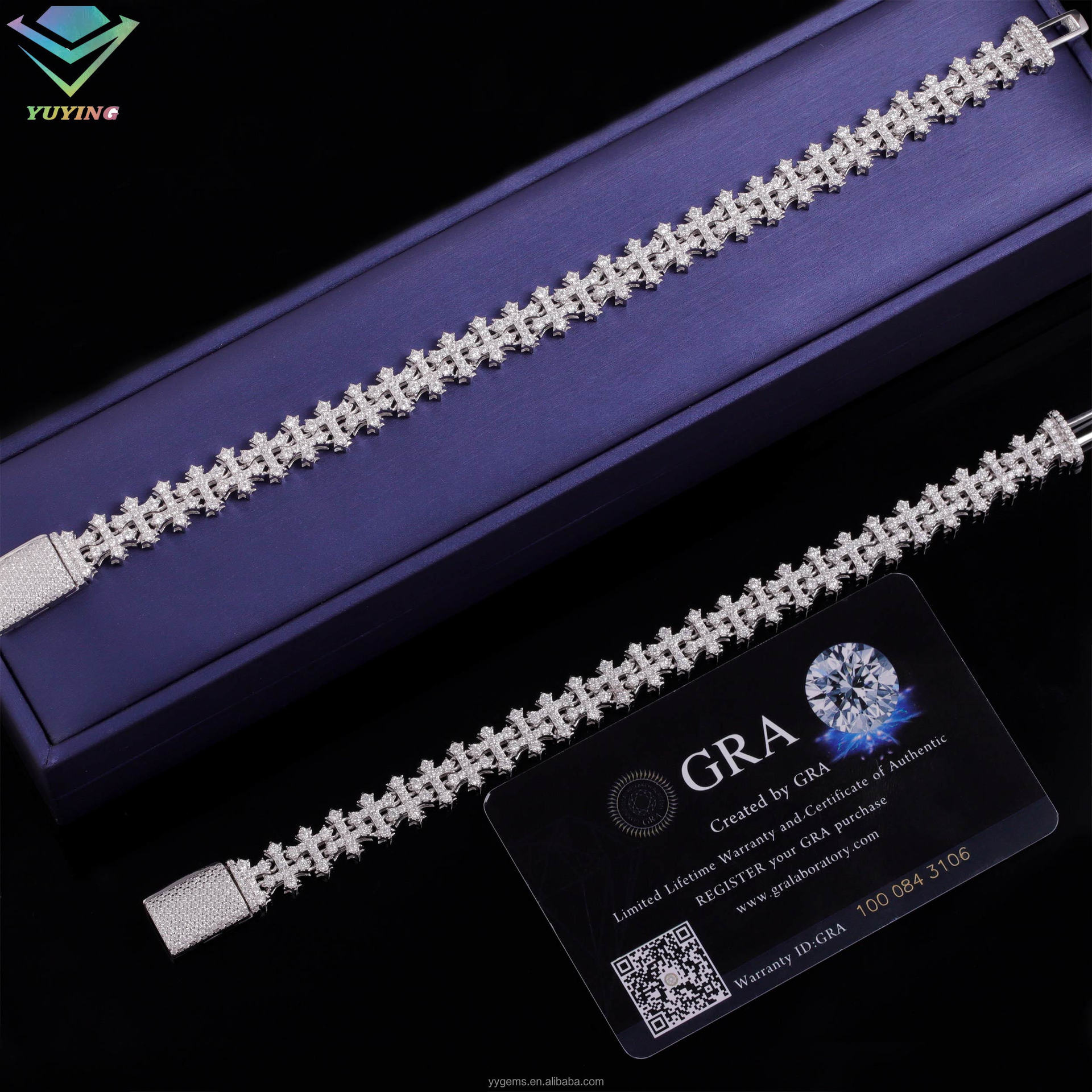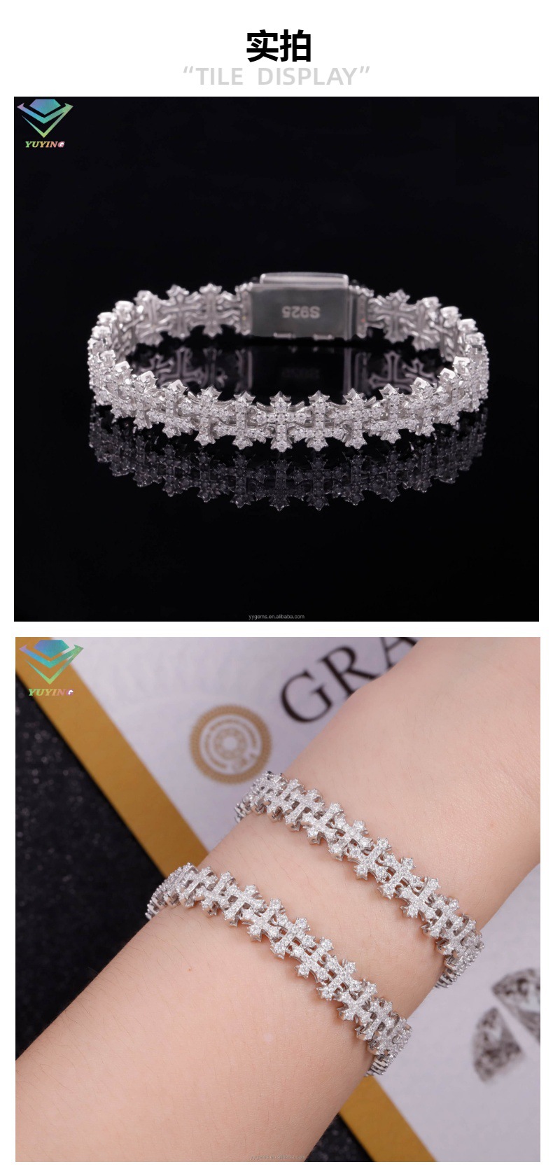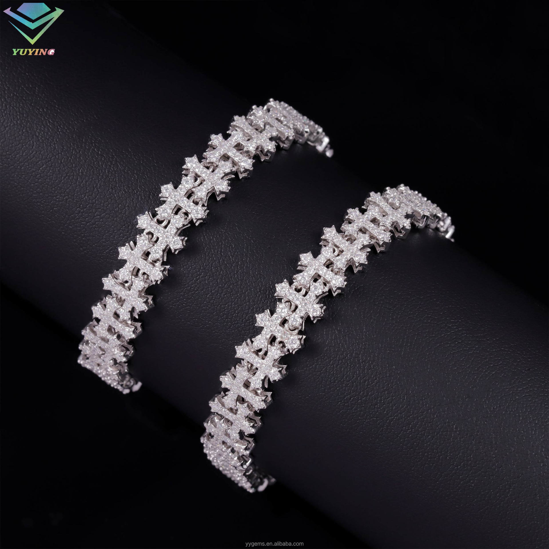 Браслет из стерлингового серебра S925 в стиле легкой роскоши, европейский и американский стиль, с суперблестящим муассанитом в форме креста, простой и универсальный ювелирный аксессуар.