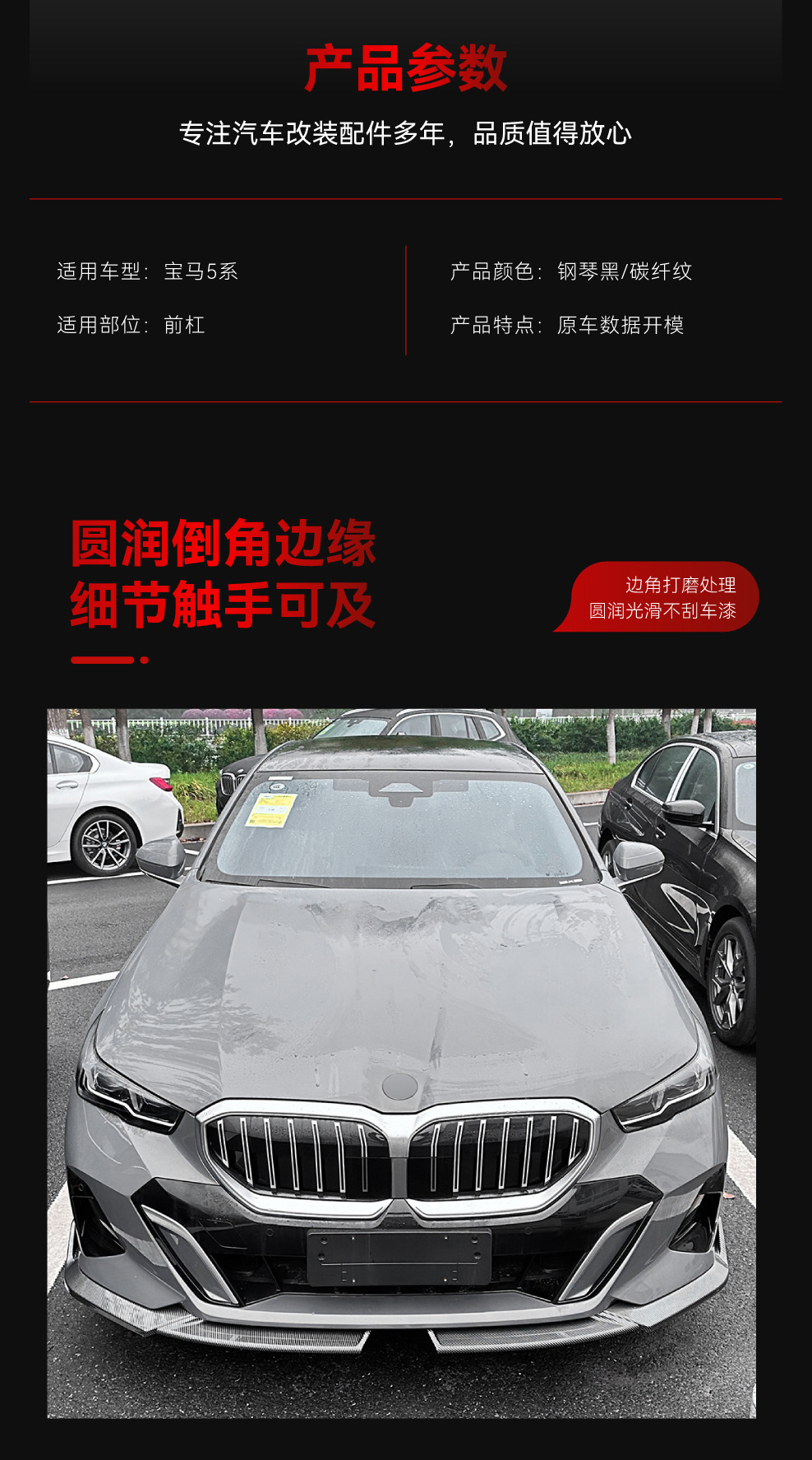 Подходит для BMW 5 серии i5 G60 G61 M Sport MP 2024+ годов выпуска, передний спойлер, накладка на передний бампер, детали для тюнинга.