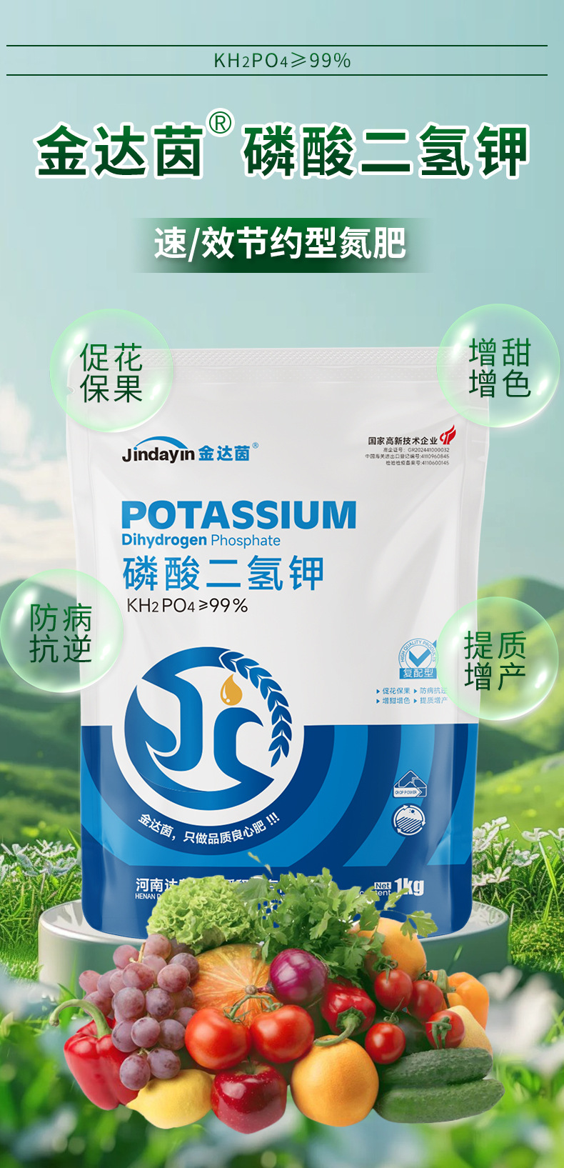 Дигидрофосфат калия, сельскохозяйственное удобрение для плодовых деревьев, дынь, овощей, цветов, листовое удобрение, защита цветов и плодов, высокоэффективное удобрение с фосфором и калием