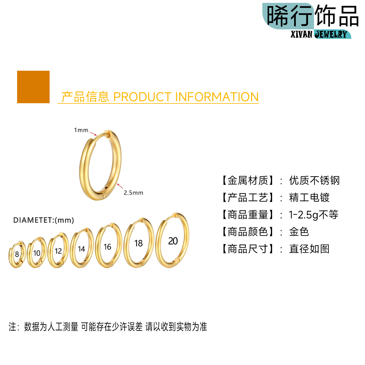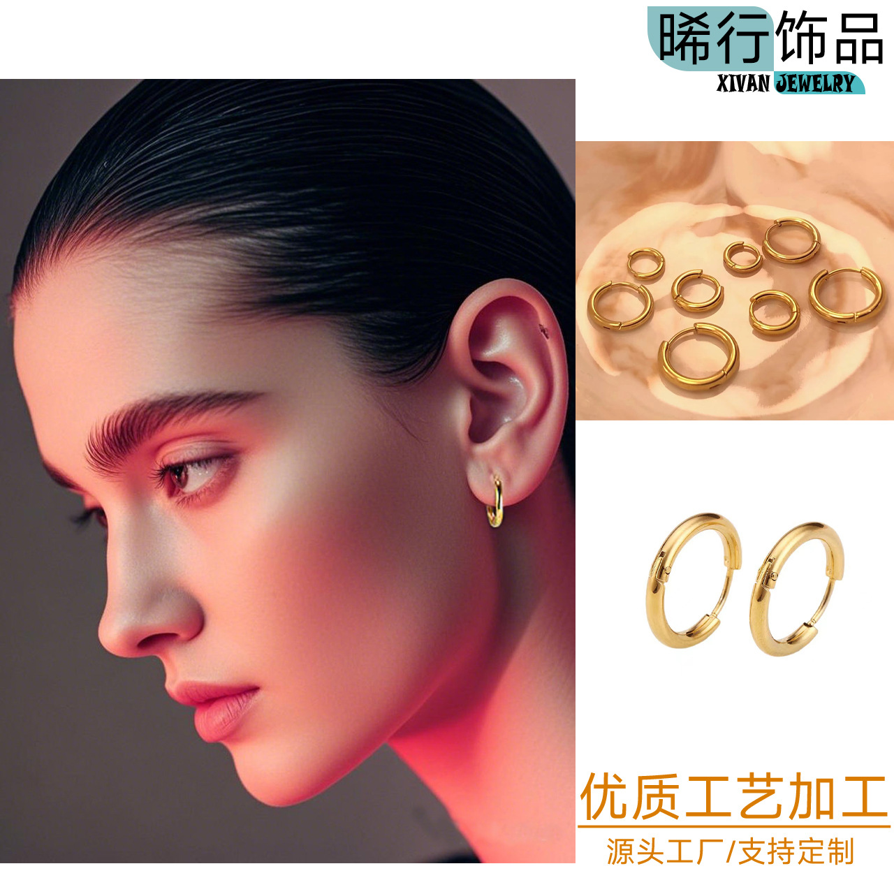 Серьги из титановой стали для мужчин и женщин, унисекс, массивные серьги-кольца, в европейском и американском стиле, наушники-клипсы, гальванизированные серьги из нержавеющей стали, минималистичная форма кольца.