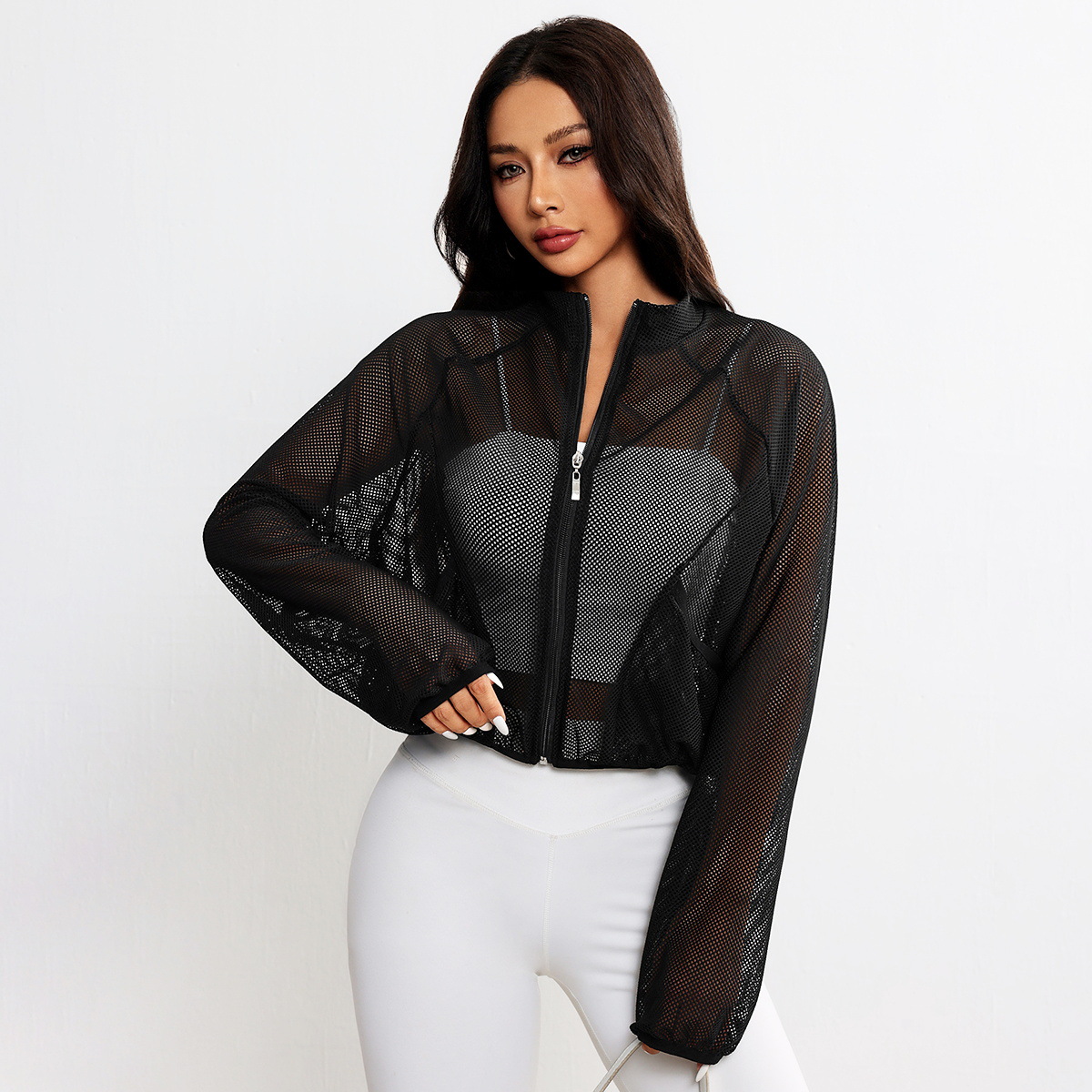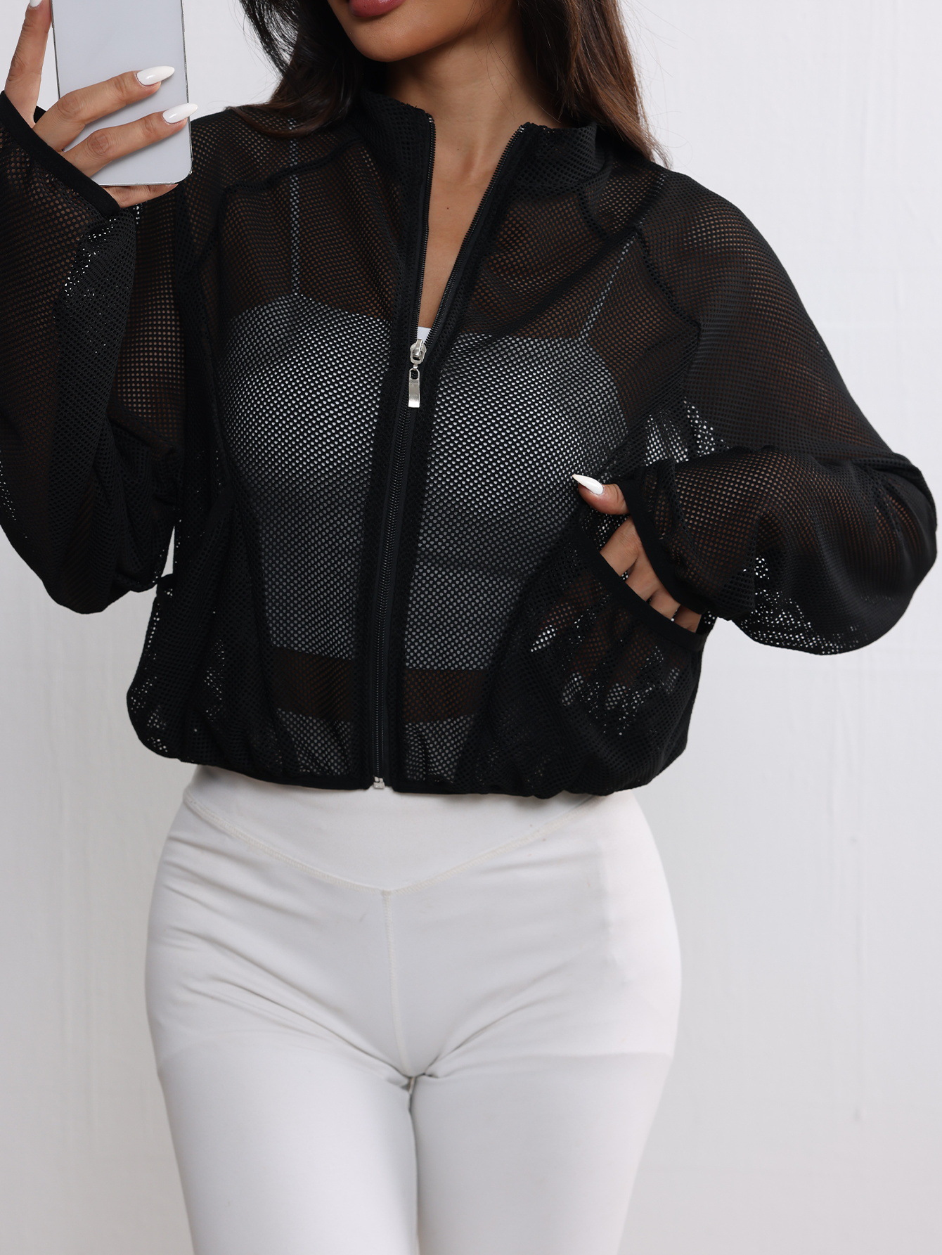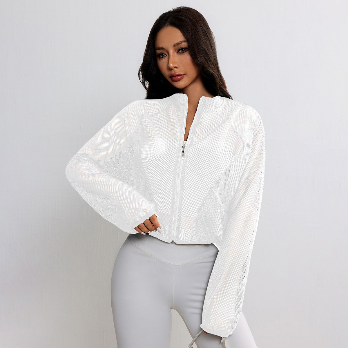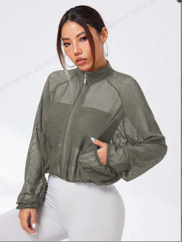 Спортивная куртка для йоги, сетчатый топ, дышащий, модный, универсальный, простой, однотонный, легкий, элегантный, суперуниверсальный