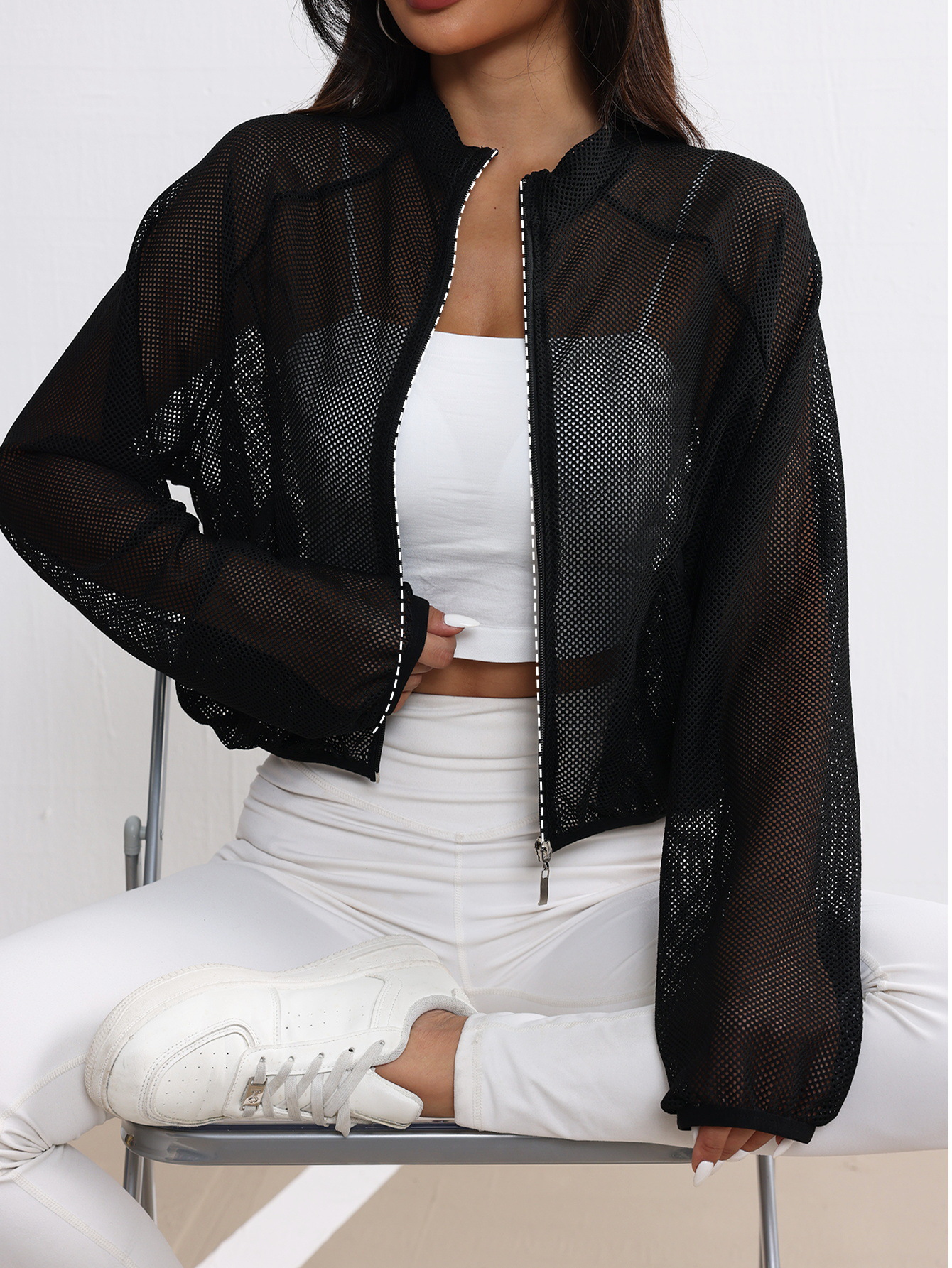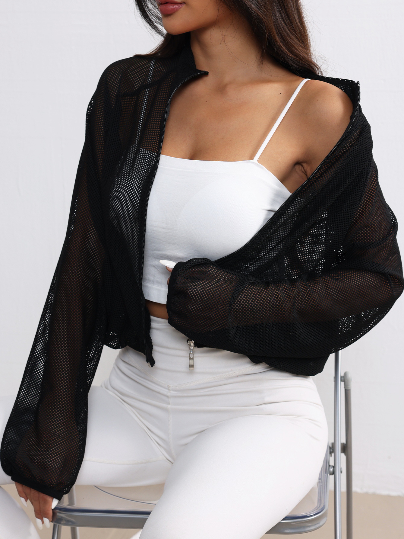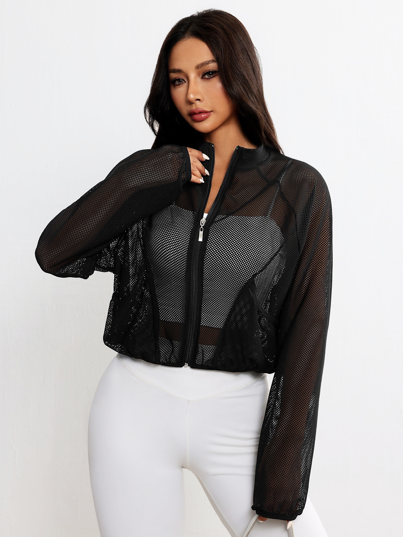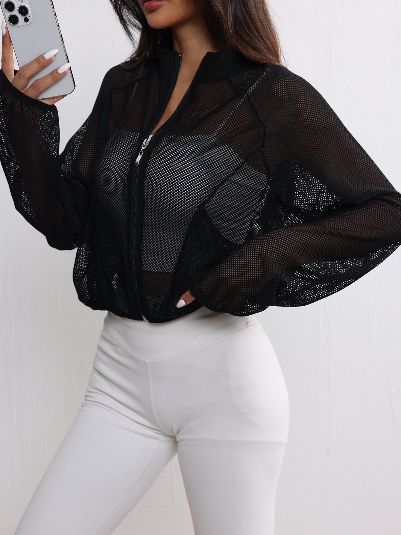 Спортивная куртка для йоги, сетчатый топ, дышащий, модный, универсальный, простой, однотонный, легкий, элегантный, суперуниверсальный