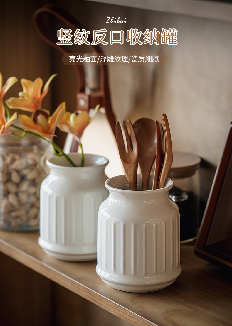 Ray Белая кухня рельефная керамическая банка для хранения Японский стиль палочки для еды Стол для украшения бочки для украшения трансграничный экспорт