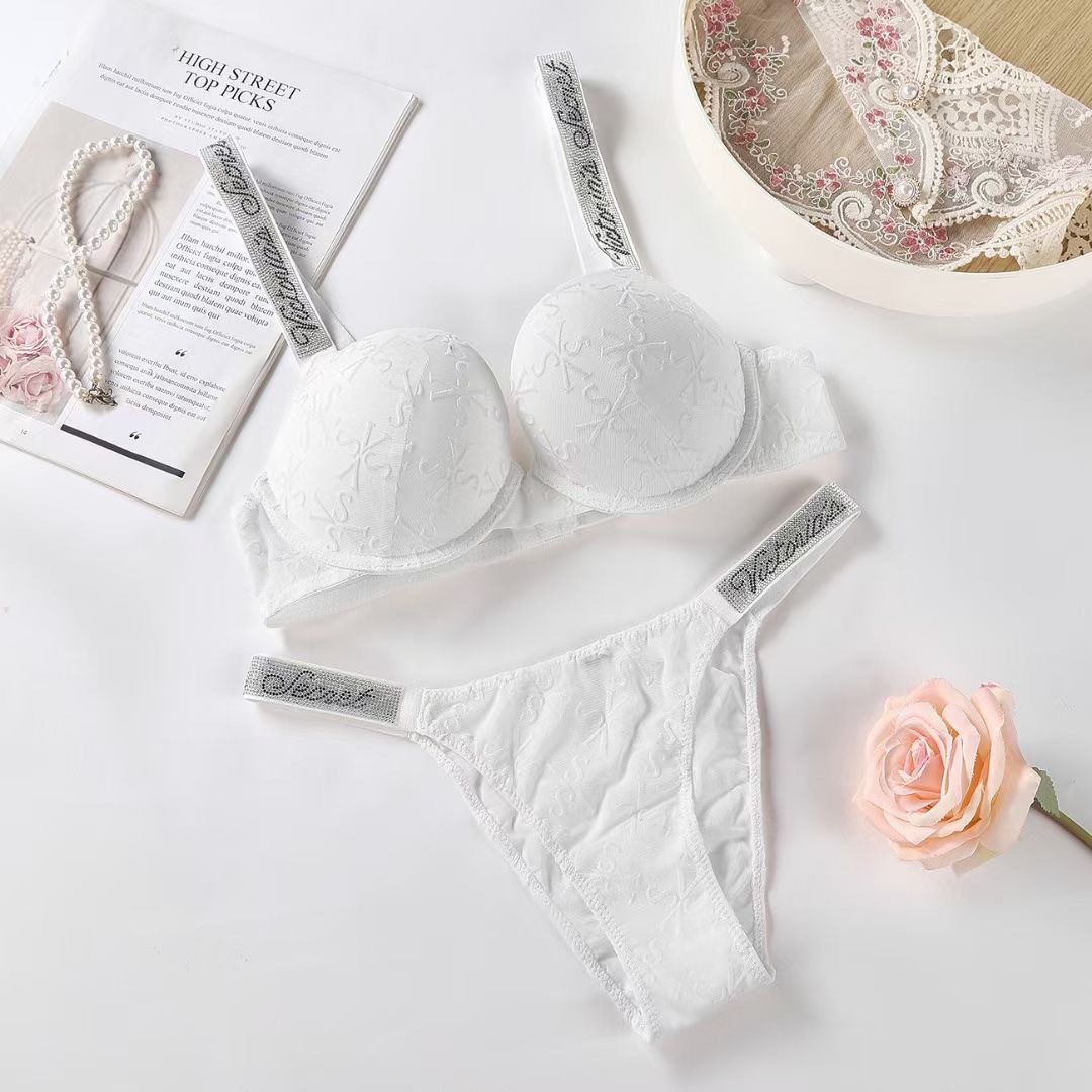 Комплект женского белья 2023 года в европейском и американском стиле, украшенный стразами, с эффектом бархата, сексуальный, с кружевной отделкой и бесшовным дизайном.