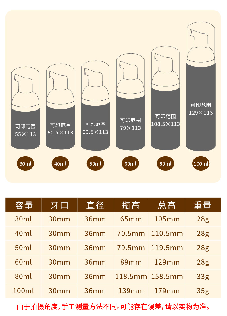 40ml; 60ml; 80ml; 100ml; 50ml; 30ml
