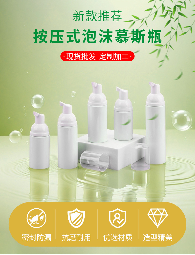 Модный флакон-дозатор для очищающего мусса, 30 зубчиков, белый ПЭТ-пластик, 100 мл, оптом