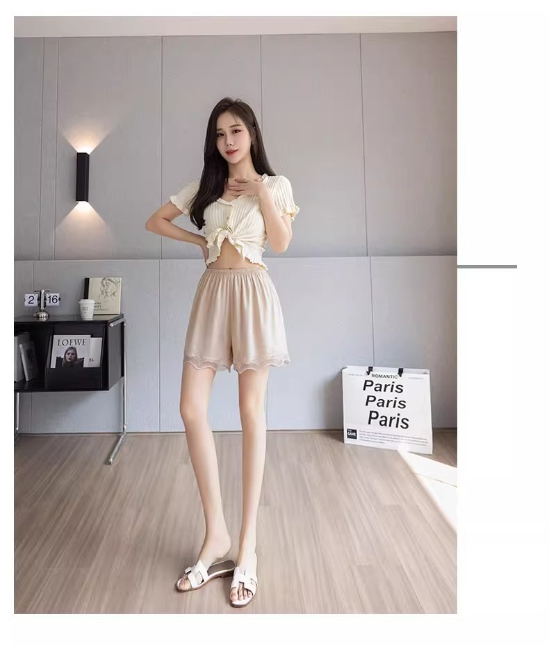 Защитные брюки из ледяного шелка женские анти-лучи летом тонкие свободные леггинсы можно носить на улице, кружева без рулонных пижамы шорты