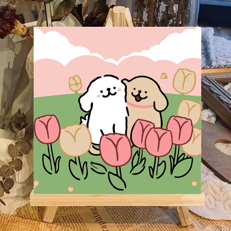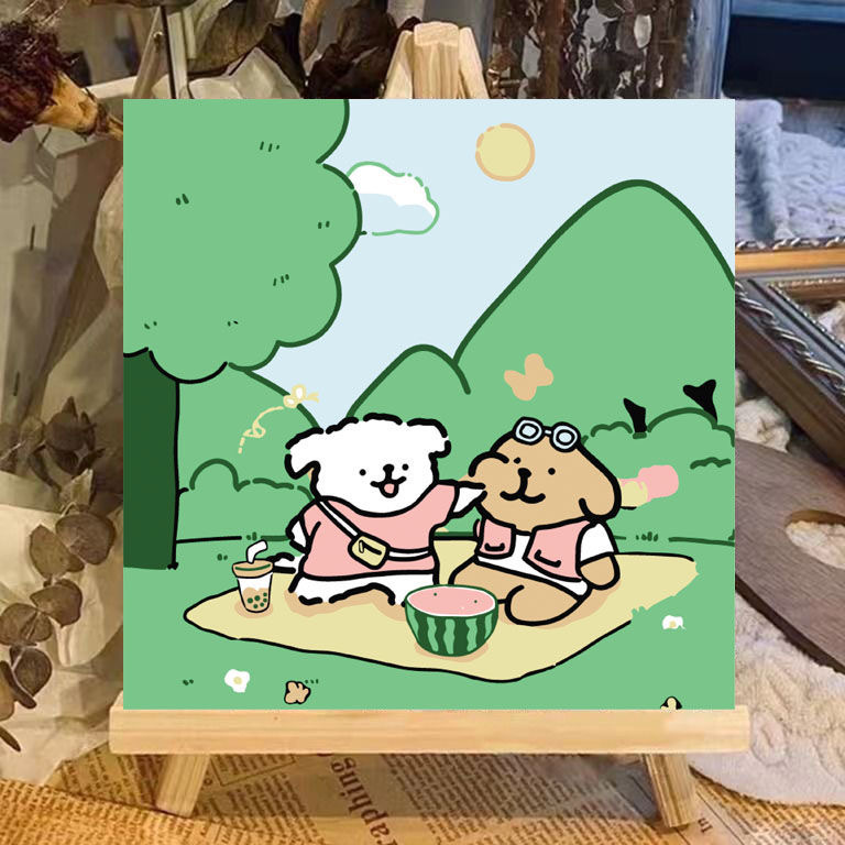 DIY маленький размер 20*20 линий щенок цифровой масляной живописи ручной раскраски исцеления холст мультфильм завод прямых продаж