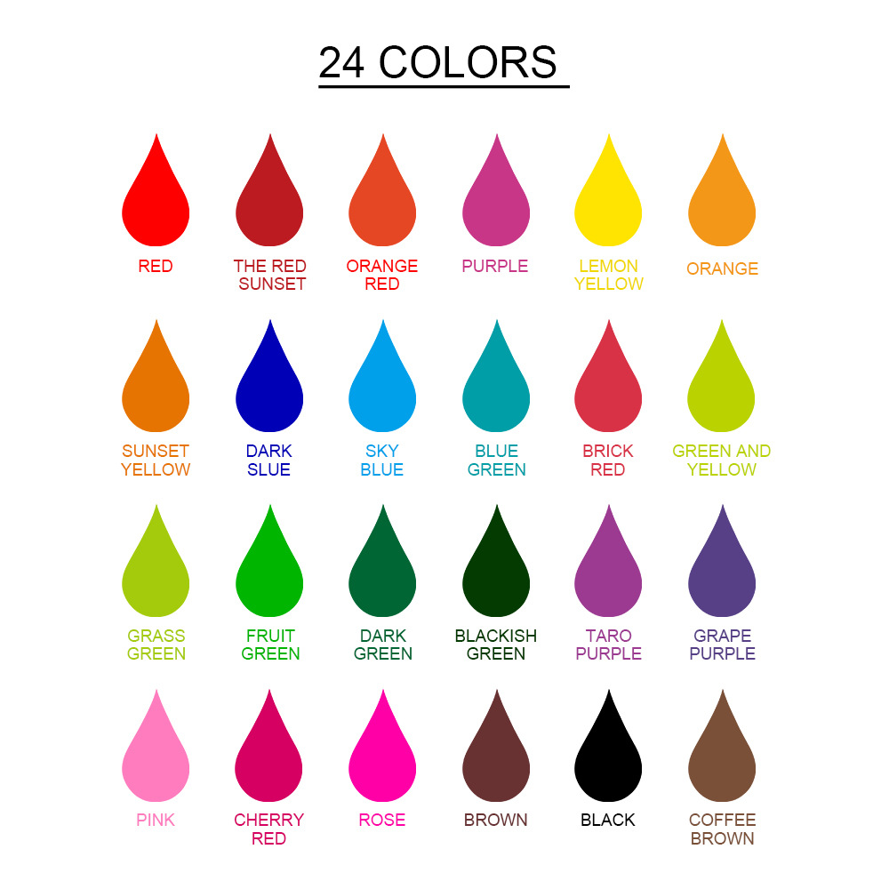 12 бутылочек пигментов, набор 1.#~12# Красный теплый цвет; 12 бутылочек пигментов набор 13#~24# Зеленый прохладный цвет