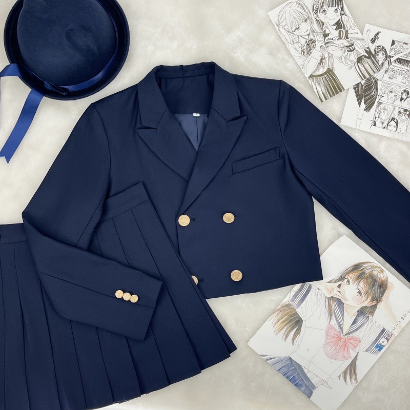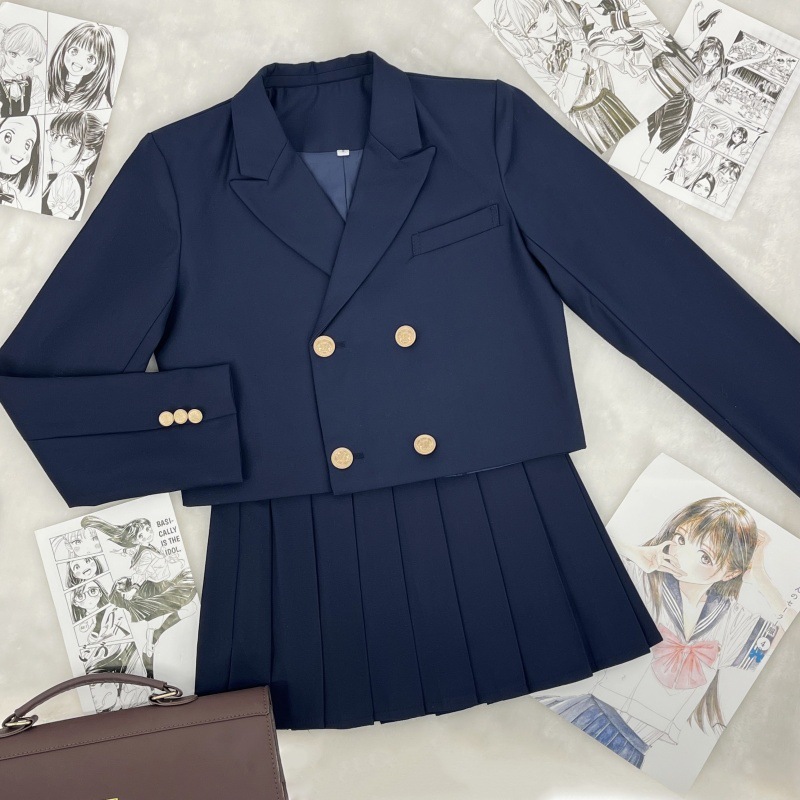 Японский колледж Стиль JK Униформа Короткий двубортный костюм для девочек