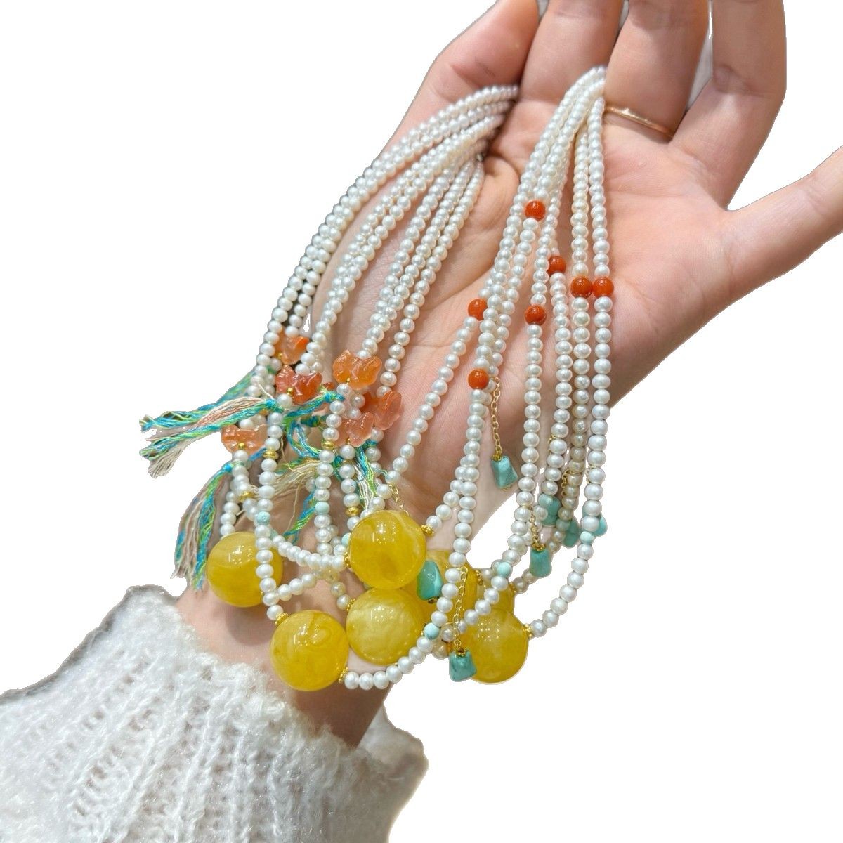 Натуральное куриное масло желтого пчелиного воска Круглый шарик шерстяная цепочка ожерелье с жемчужной цепочкой ключицы медовый воск ожерелье оптом 19 мм