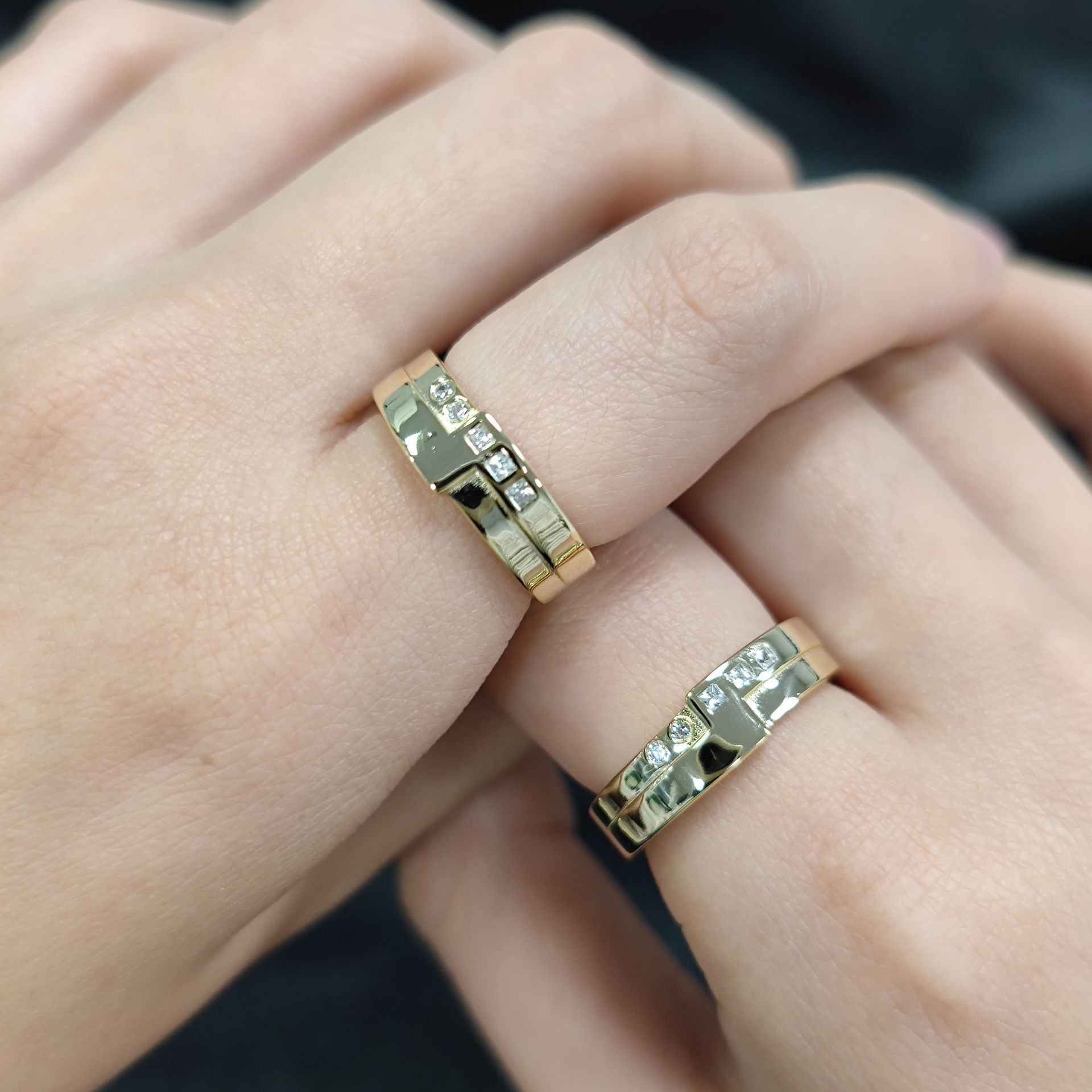 Кольцо из серебра 925 пробы с инкрустацией культивированных бриллиантов золотого цвета для мужчин и женщин, кольцо для пары, квадратное модное кольцо, ювелирные изделия для рук