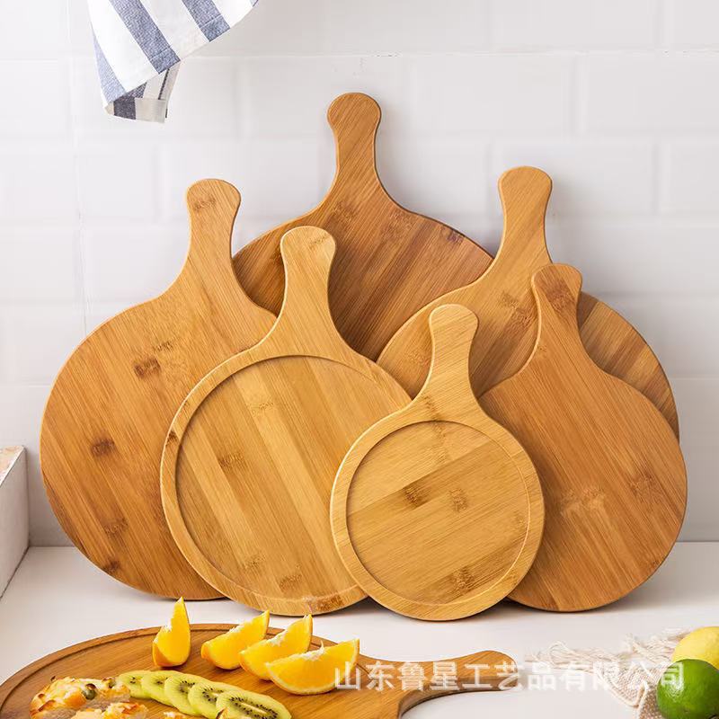 Бамбуковая круглая фруктовая тарелка для пиццы домашняя тарелка для пиццы из цельного дерева кухня с ручкой разделочная доска