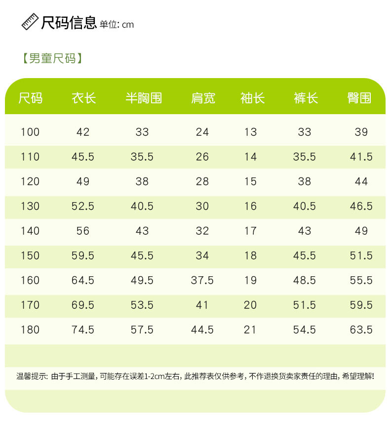 110cm; 120cm; 130cm; 140cm; 150cm; 160cm; 170cm; 180cm