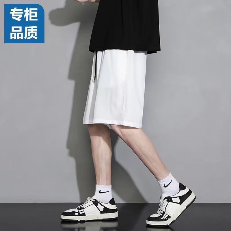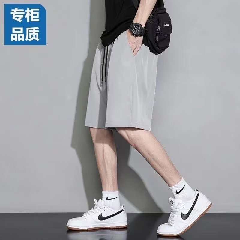 Шорты быстрого сушки с ледяным шелком для мужчин летом тонкие прямые свободные спортивные укороченные повседневные дикие спортивные брюки