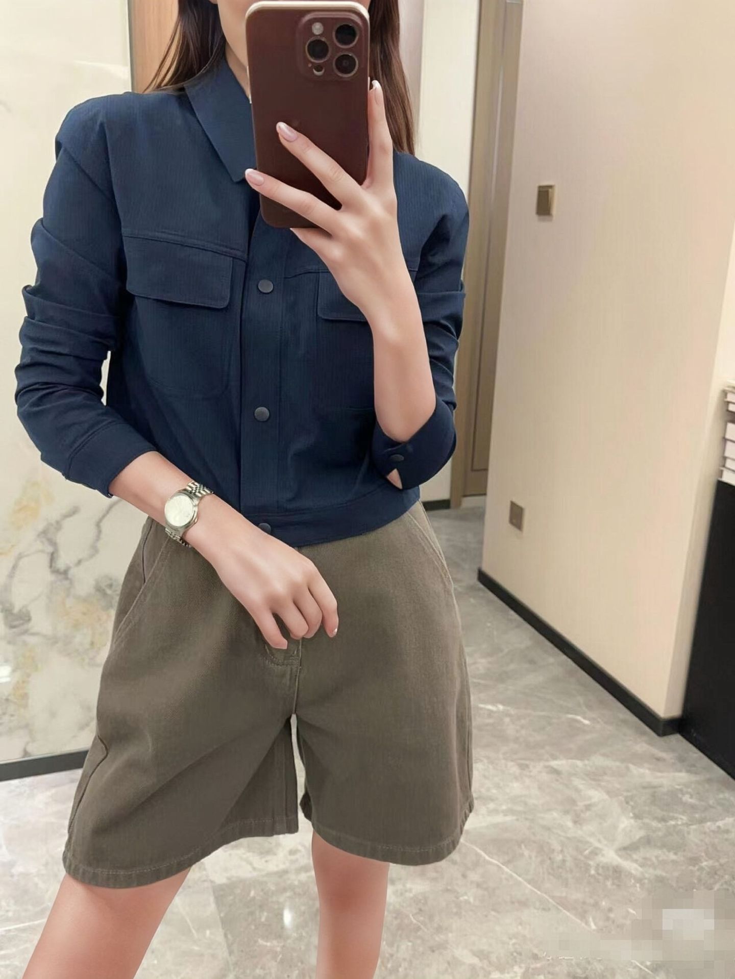 露露同款系扣长袖夹克休闲时尚宽松翻领外套挺廓通勤短款工装衬衫lulu同款新款春夏季小个子复古polo领工装外套休闲短夹克薄开衫上
