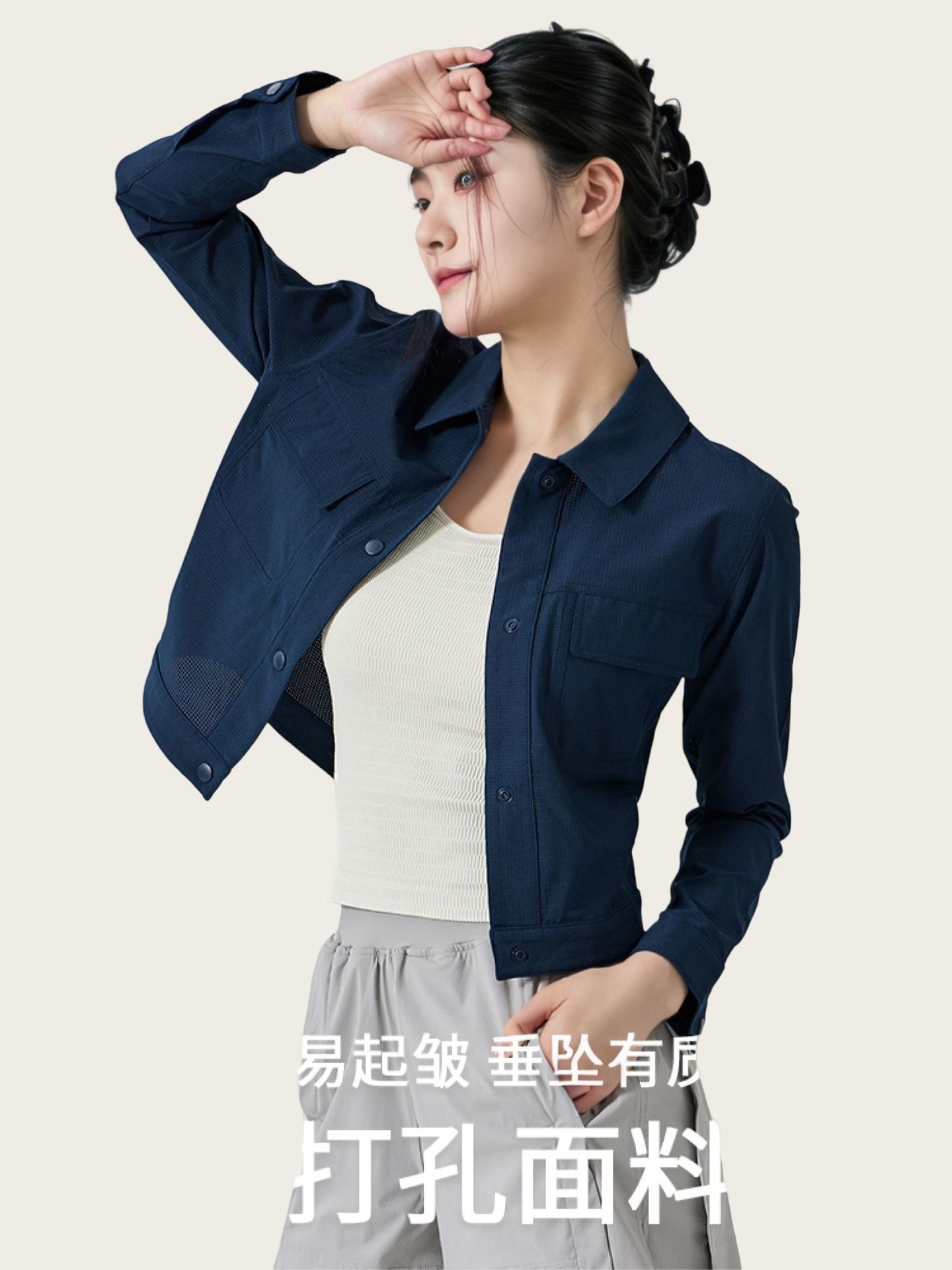 2025新款洞洞布立领夹克通勤百搭衬衫长袖运动休闲