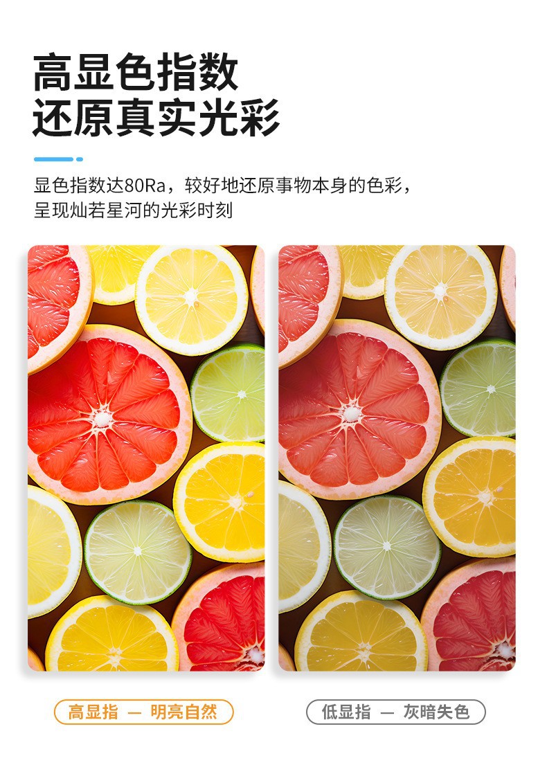 10Вт 0.3m белый свет 6500К; 15Вт 0.45m белый свет 6500К; 18 Вт 0.6m белый свет 6500 К [широко известный как 20 Вт]; 30 Вт 0.9m белый свет 6500 К [широко известный как 30 Вт]; 36 Вт 1.2m белый свет 6500 К [широко известный как 40 Вт]