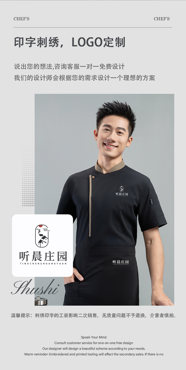 Отель Шеф-повар Рабочая одежда с короткими рукавами мужской ресторан ресторан быстрого питания Ресторан высокого класса Летняя одежда шеф-повара Печать LOGO