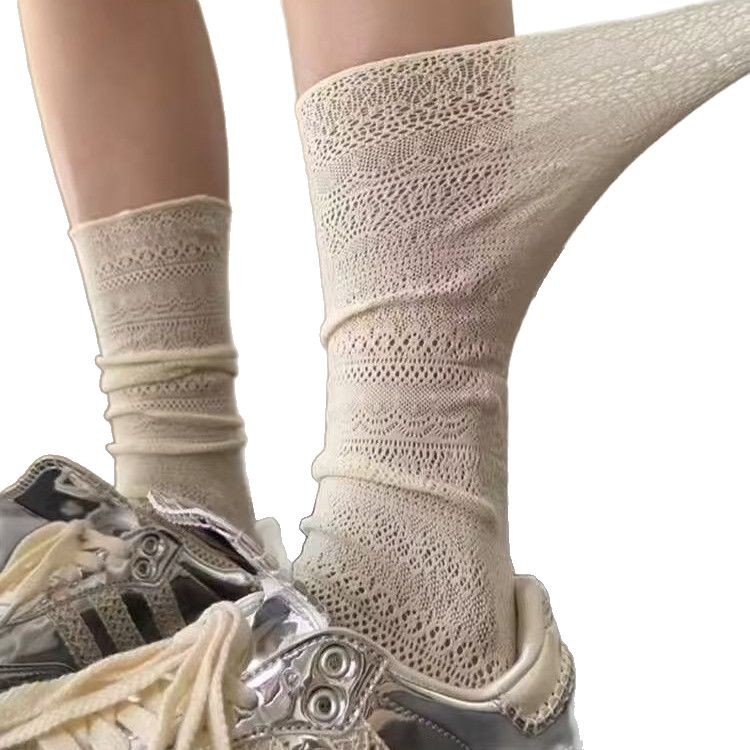 Модные весенне-летние тонкие носки для женщин JK, универсальные сетчатые носки до середины икры, дышащие носки в стиле ретро с полыми носками